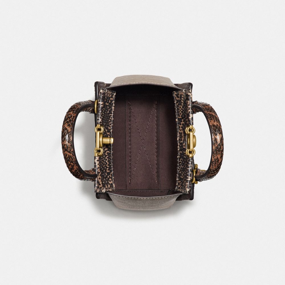 Signature coated canvas, glovetanned leather and genuine snakeskin| Turnlock closure, fabric lining| Handles with 2 1/2" drop| Detachable strap with 21 1/2" drop for shoulder or crossbody wear| Instantly change the look of your bag with an interchangeable strap.| Four protective feet at base| 6 3/4" (L) x 7 1/2" (H) x 3 1/4" (W)| Also available in other sizes