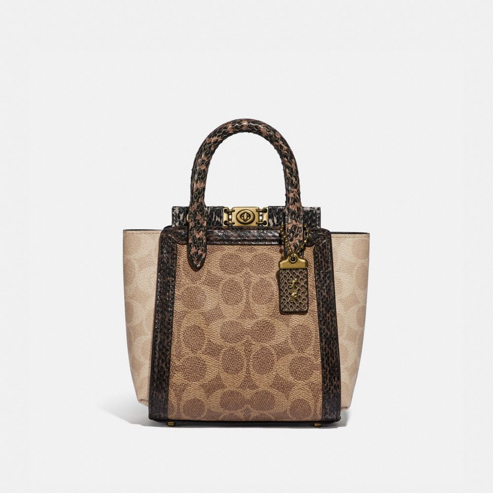 TROUPE TOTE 16 IN SIGNATURE CANVAS WITH SNAKESKIN DETAIL