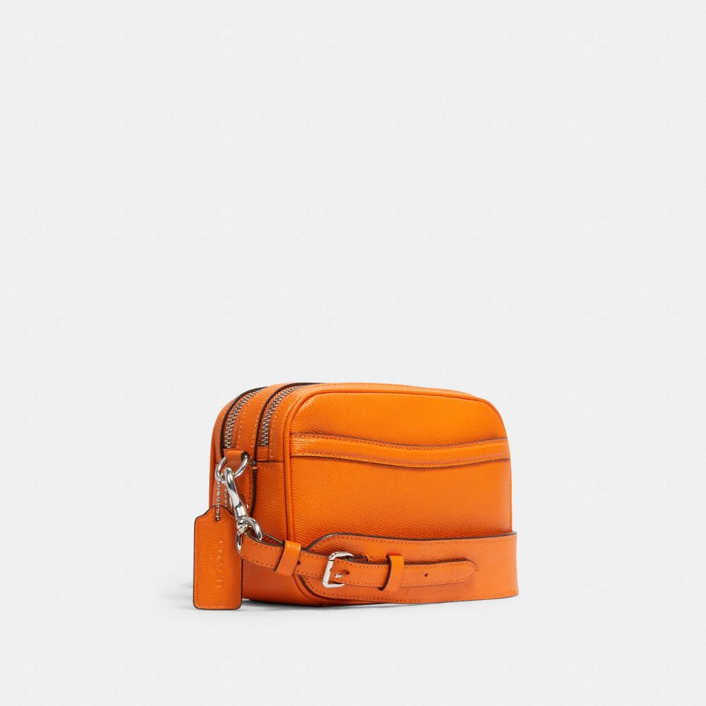 Crossgrain leather| Inside multifunction pocket| Double zip closure, fabric lining| Outside open pocket| Detachable strap with 23" drop for shoulder or crossbody wear| 7 3/4" (L) x 5" (H) x 2 3/4" (W)