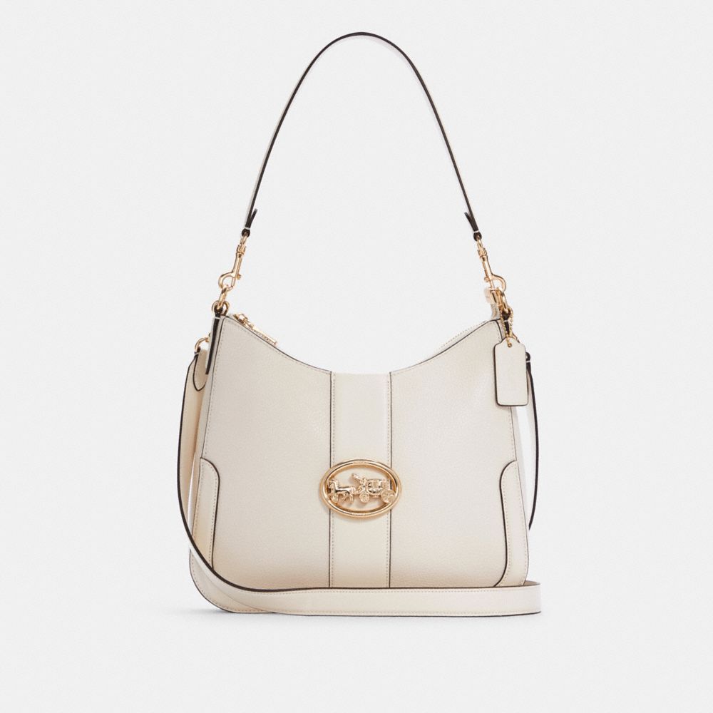 Refined pebble leather| Inside zip pocket| Zip-top closure, fabric lining| Detachable handle with 11" drop| Outside open pocket| Detachable strap with 21 1/2" drop for shoulder or crossbody wear| 11" (L) x 9 3/4" (H) x 2 1/2" (W)Style No. C1534