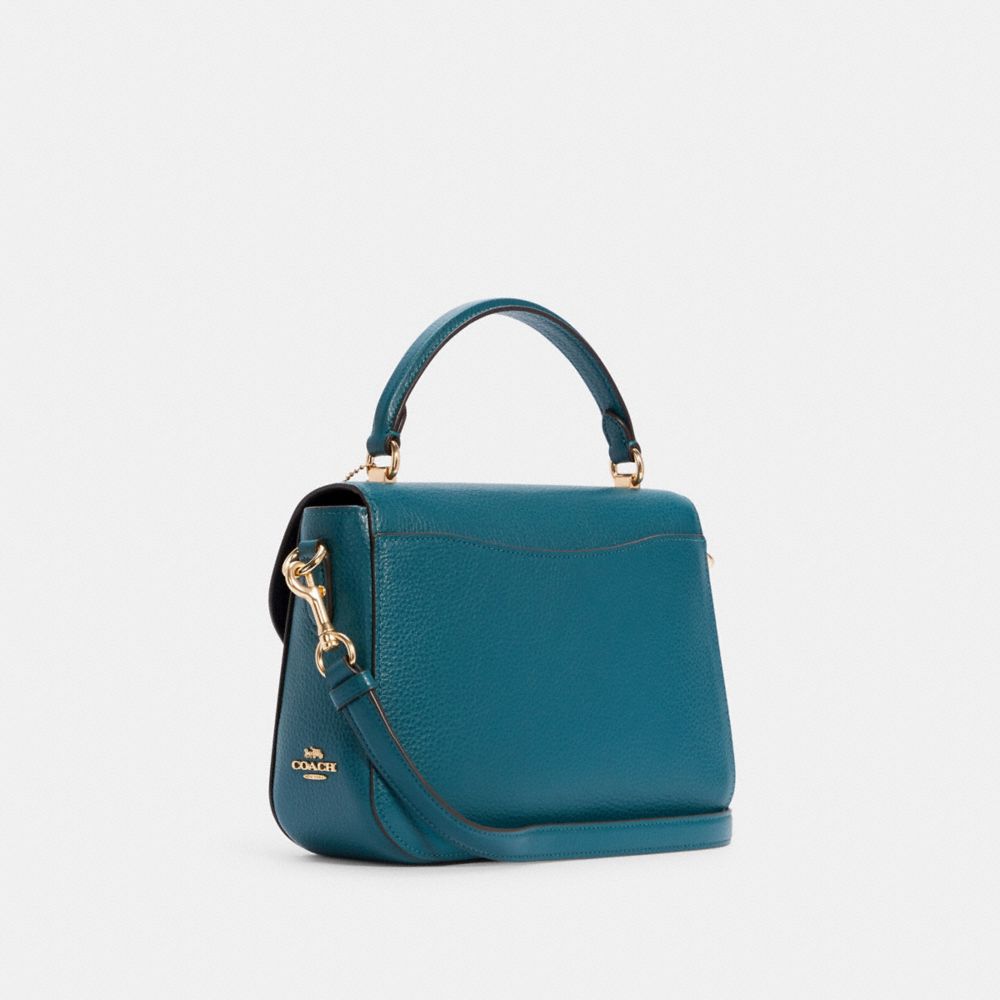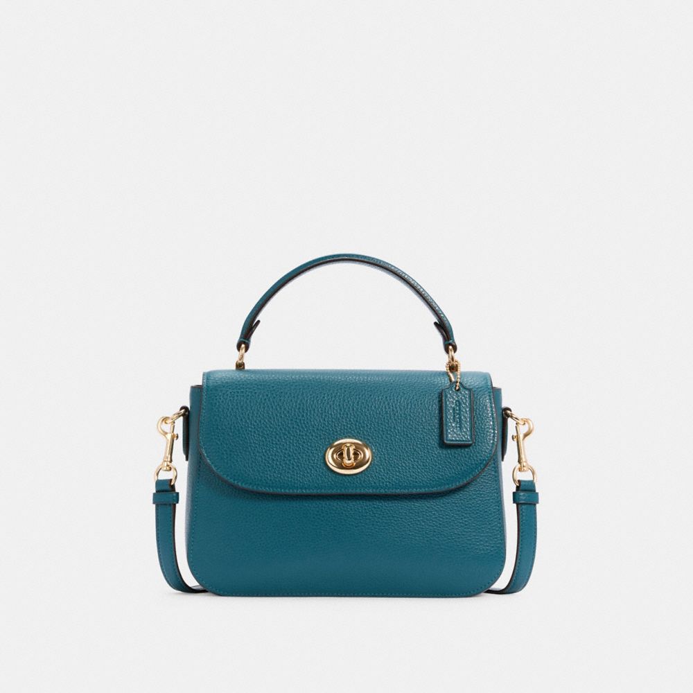 Refined pebble leather| Inside zip and multifunction pockets| Turnlock closure, fabric lining| Top handle with 3 1/2" drop| Outside open pocket| Detachable strap with 22" drop for shoulder or crossbody wear| 9 1/2" (L) x 7" (H) x 2 3/4" (W)