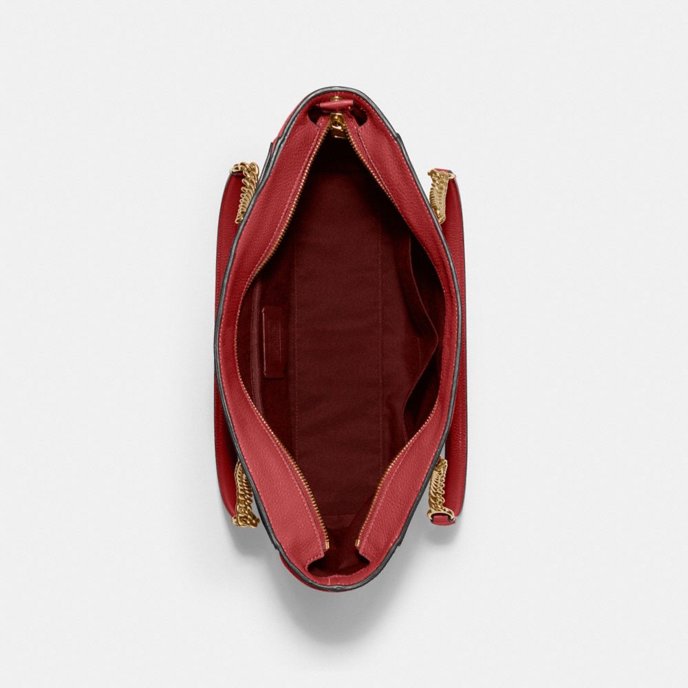 Refined pebble leather| Inside zip, cell phone and multifunction pockets| Zip-top closure, fabric lining| Handles with 11 1/4" drop| Outside open pocket| Four protective feet at base| 12 1/2" (L) x 10 1/2" (H) x 4 3/4" (W)