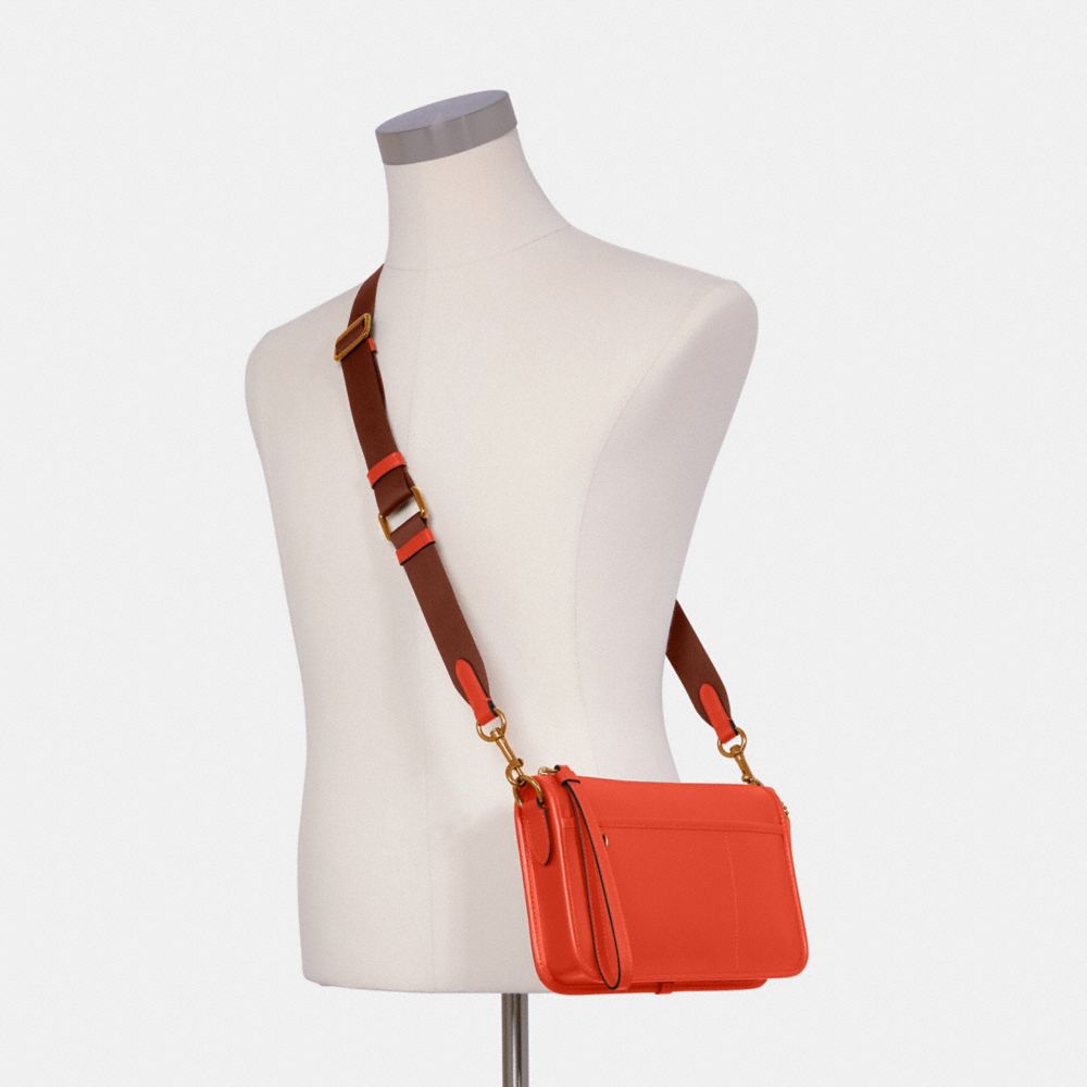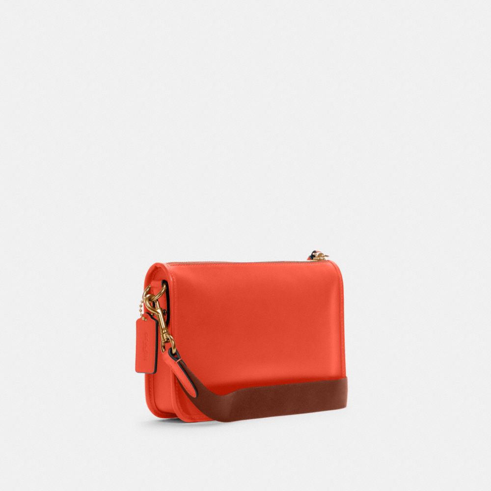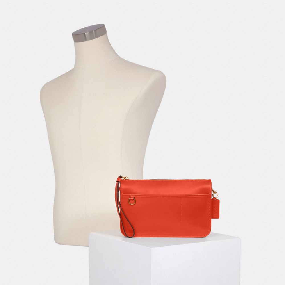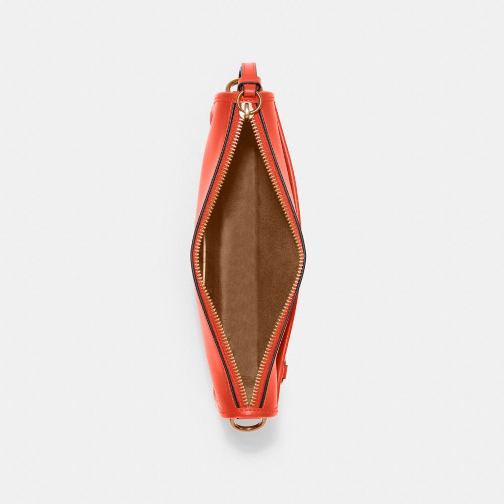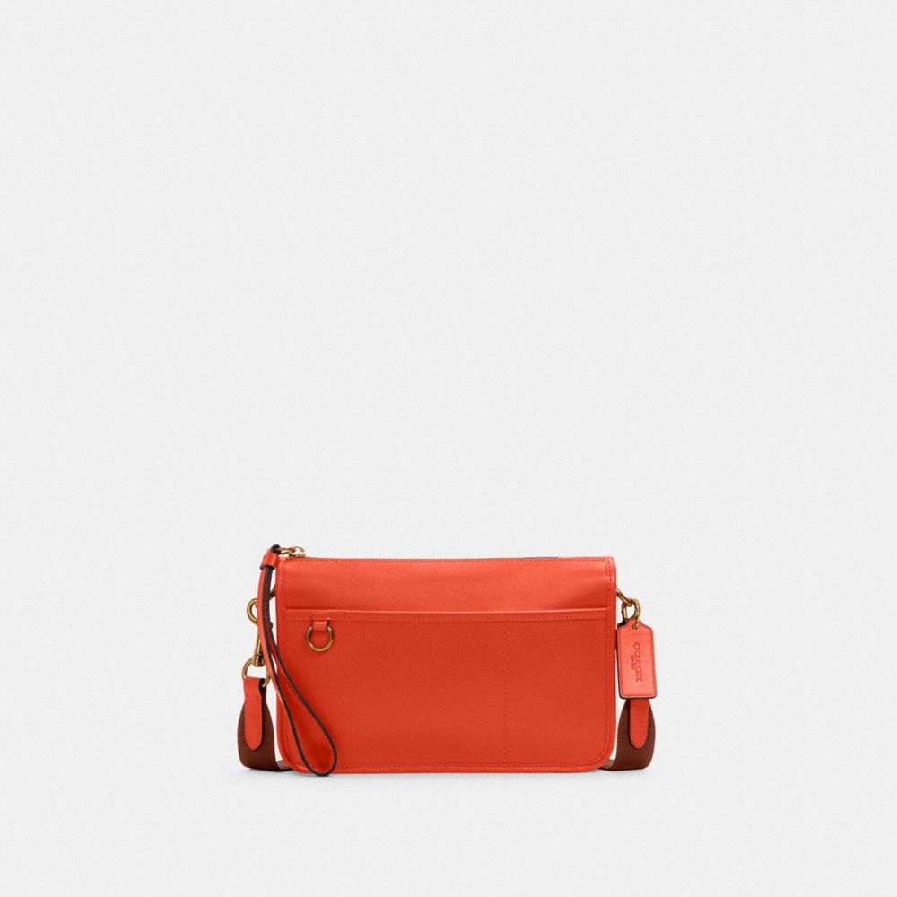 Refined calf leather| Zip-top closure, fabric lining| Outside open pocket| Attached wrist strap| Detachable strap with 22" drop for shoulder or crossbody wear| 9 3/4" (L) x 6 1/4" (H) x 2" (W)