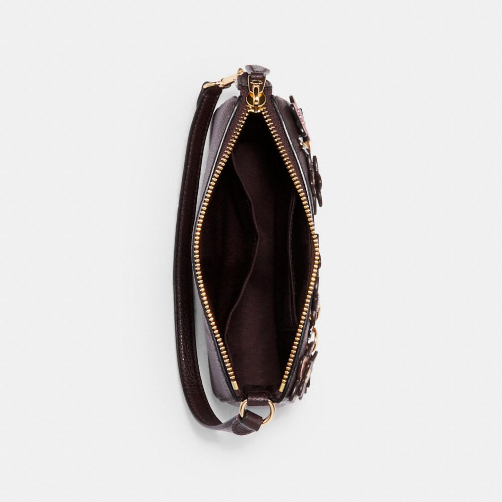 Refined pebble leather, smooth leather and snake-embossed leather| Two credit card slots| Inside multifunction pocket| Zip-top closure, fabric lining| Handle with 6 1/4" drop| 7 1/2" (L) x 4 1/2" (H) x 2" (W)