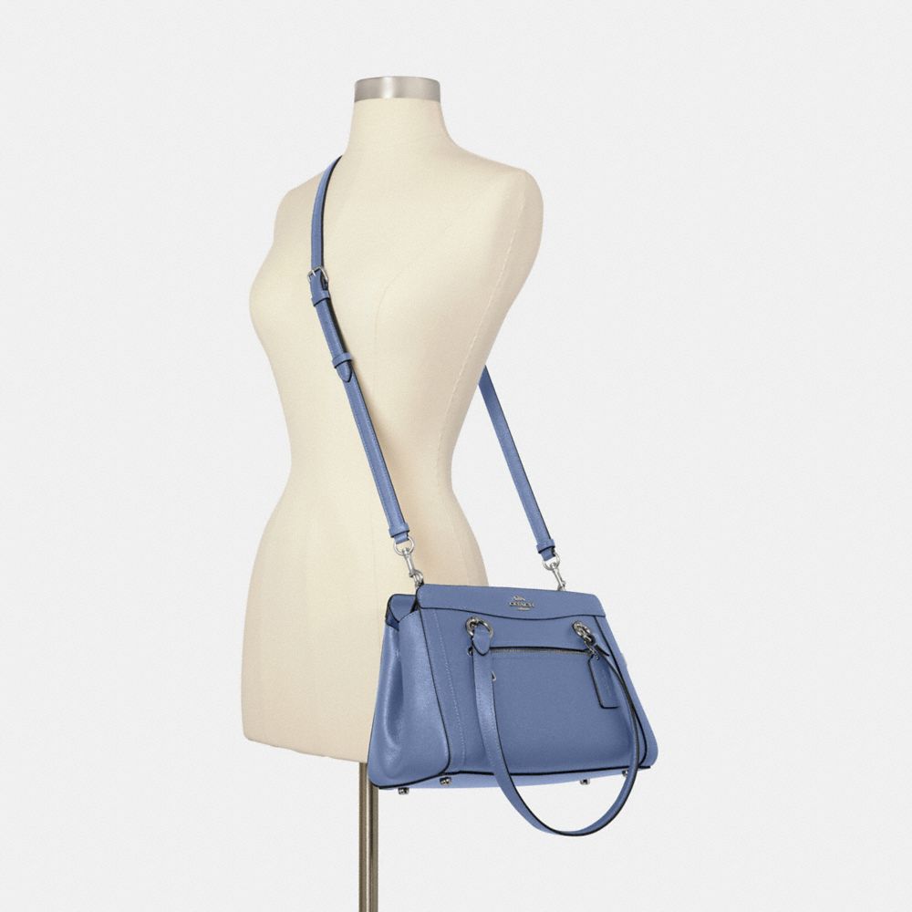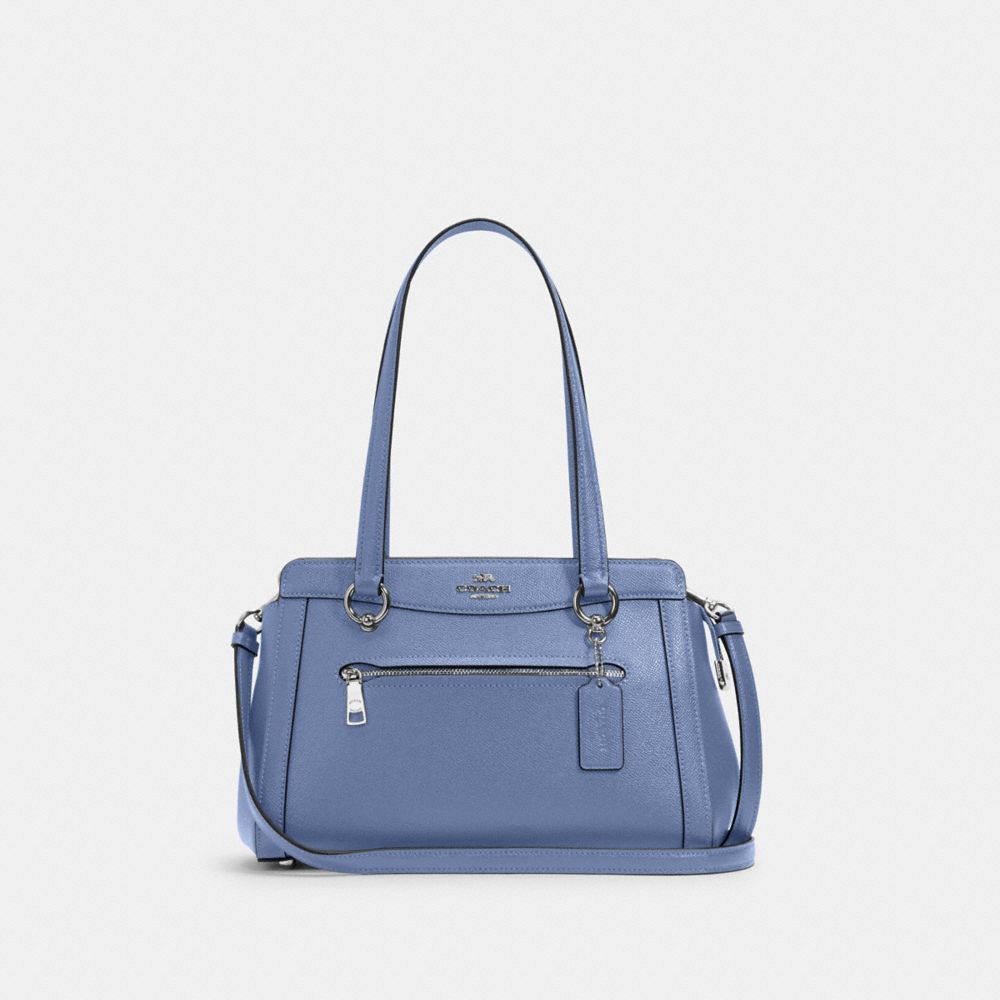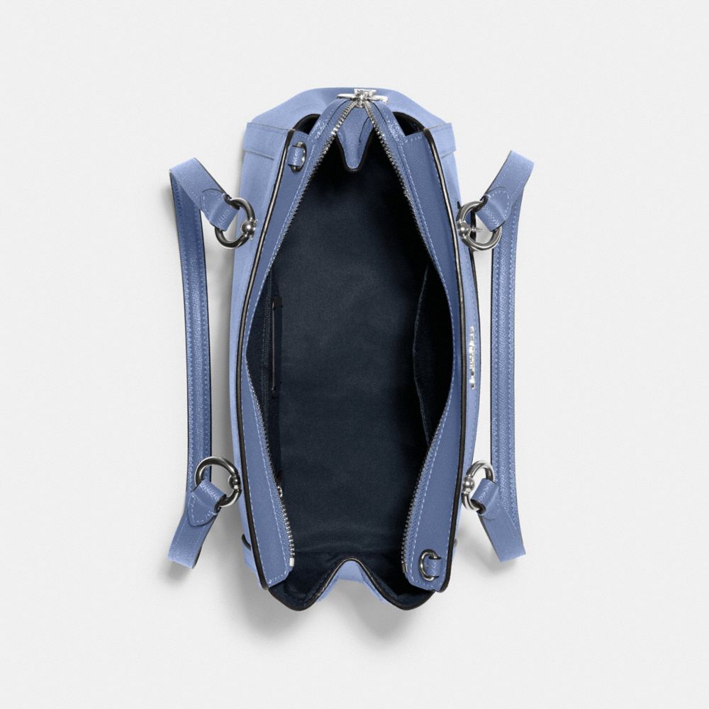Crossgrain leather| Inside zip and multifunction pockets| Zip-top closure, fabric lining| Handles with 8 1/2" drop| Outside zip pocket| Detachable strap with 22" drop for shoulder or crossbody wear| Four protective feet at base| 11 1/2" (L) x 7 1/2" (H) x 5 1/4" (W)