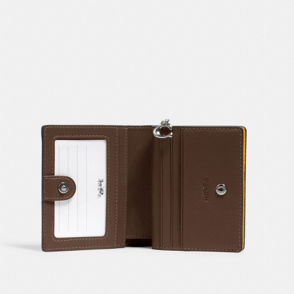 Refined pebble leather| Three credit card slots| ID window| Full-length bill compartment| Snap closure| Outside zip coin pocket| 4 1/4" (L) x 3 1/2" (H) x 1" (W)