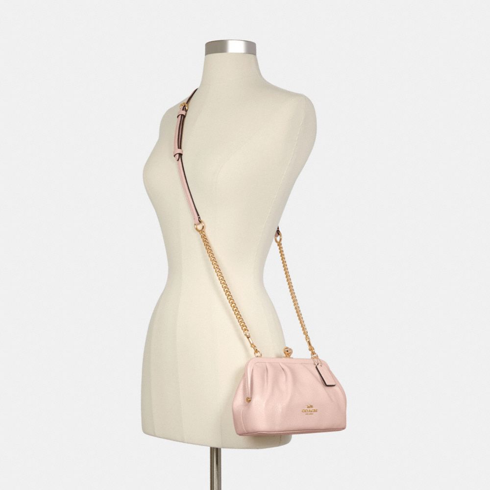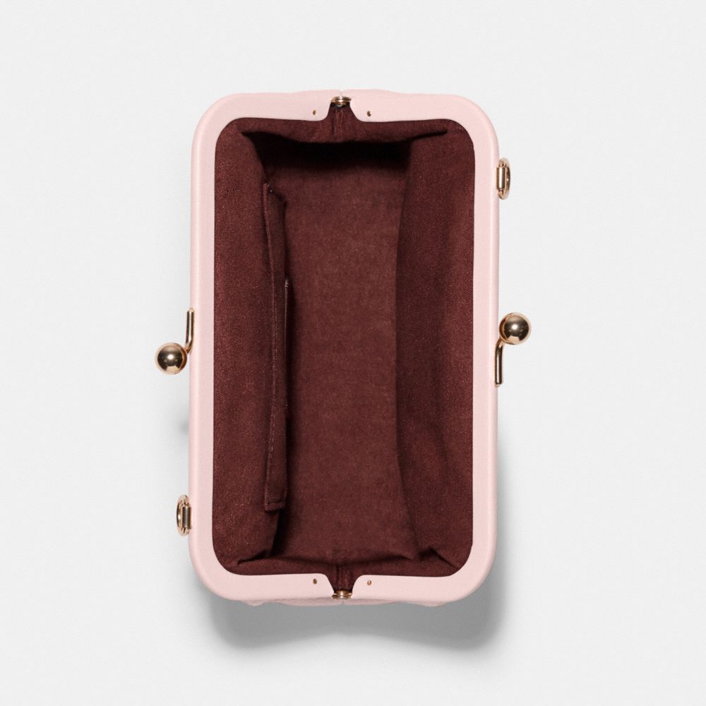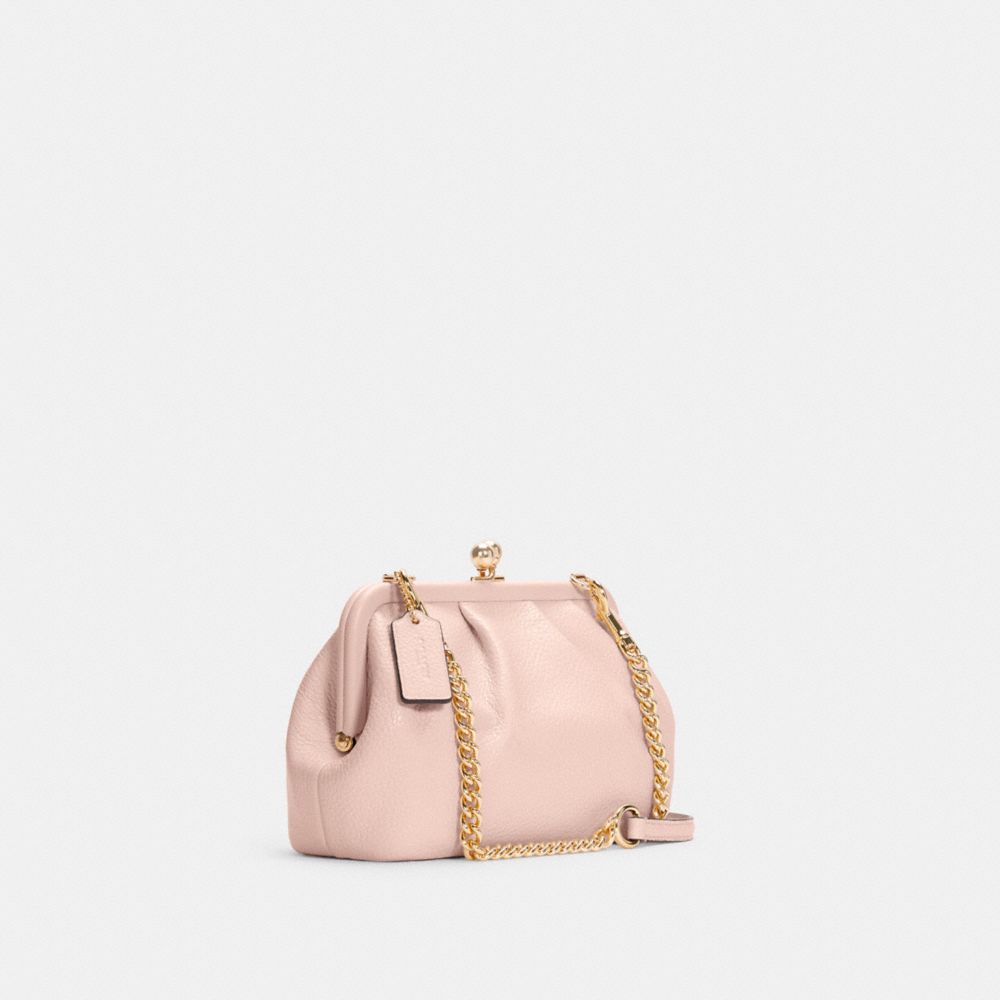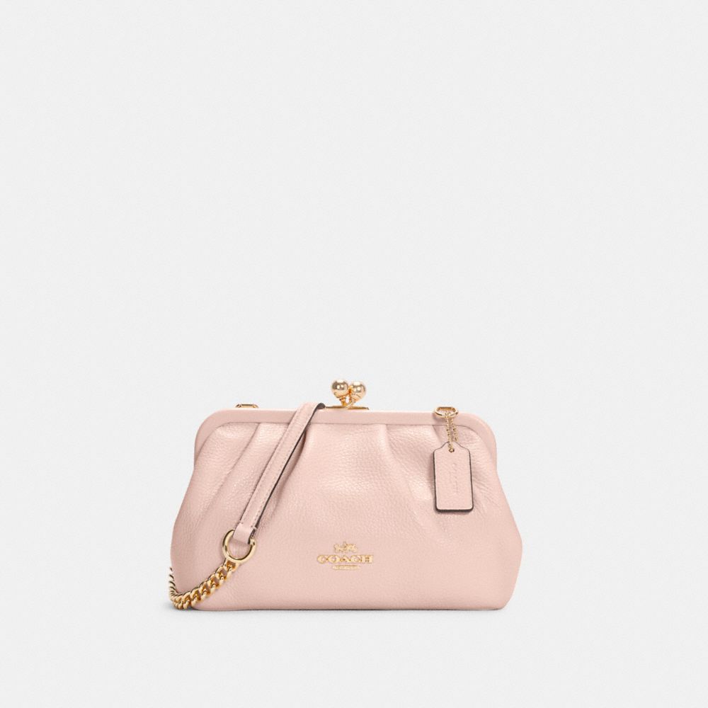 Refined pebble leather and smooth leather| Inside multifunction pocket| Kisslock closure, fabric lining| Detachable strap with 22 3/4" drop for shoulder or crossbody wear| 8 1/2" (L) x 5 1/2" (H) x 3" (W)