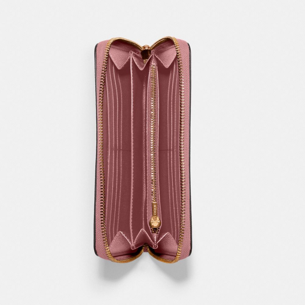 Crossgrain leather| Twelve credit card slots| Full-length bill compartments| Inside zip coin pocket| Zip-around closure| Detachable wrist strap| 7 1/2" (L) x 4" (H) x 1" (W)Style No. C3441