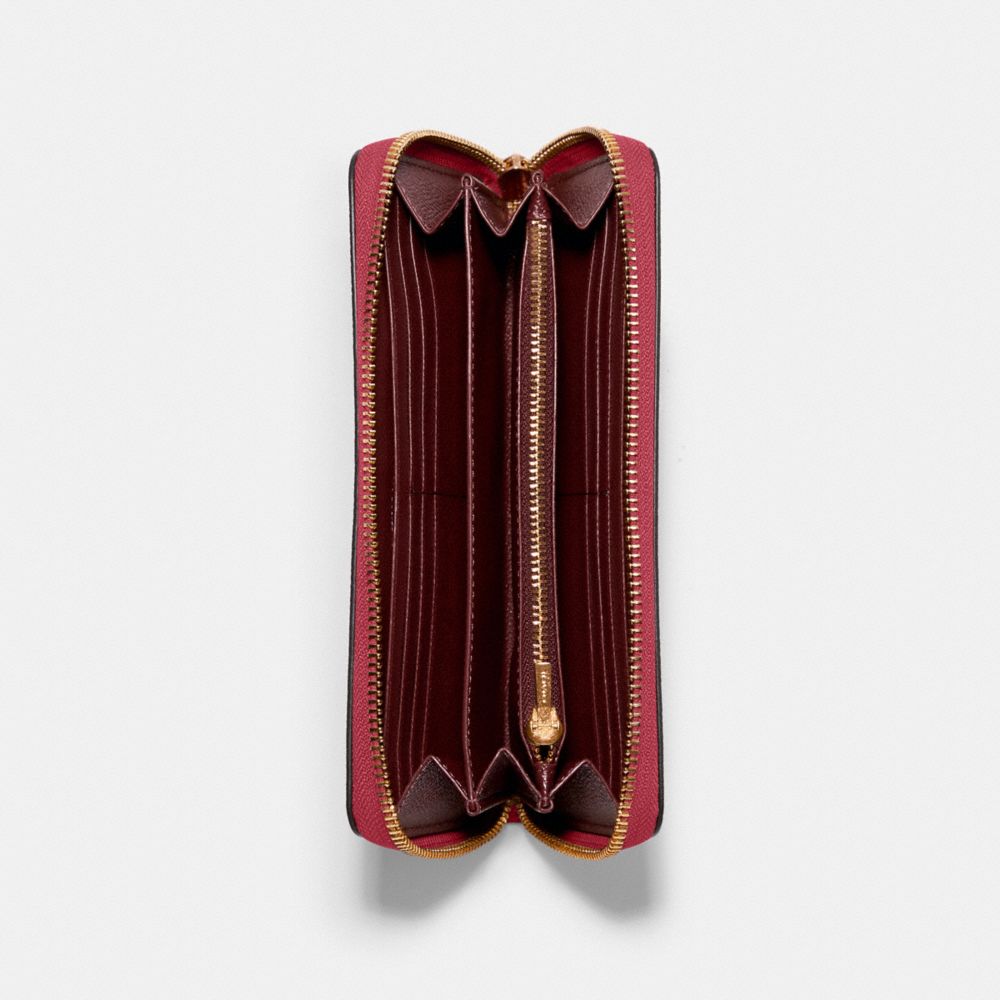 Crossgrain leather| Twelve credit card slots| Full-length bill compartments| Inside zip coin pocket| Zip-around closure| Detachable wrist strap| 7 1/2" (L) x 4" (H) x 1" (W)Style No. C3441
