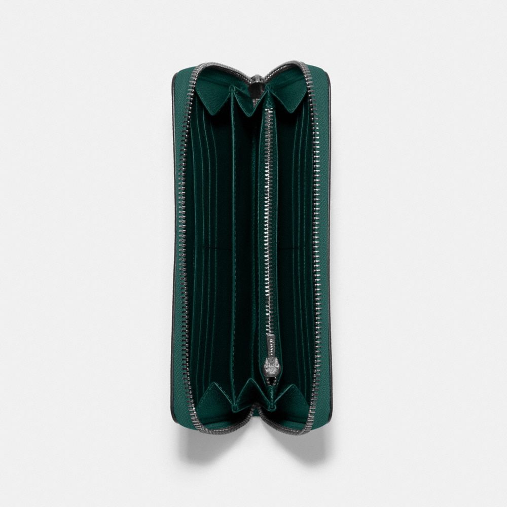 Crossgrain leather| Twelve credit card slots| Full-length bill compartments| Inside zip coin pocket| Zip-around closure| Detachable wrist strap| 7 1/2" (L) x 4" (H) x 1" (W)Style No. C3441