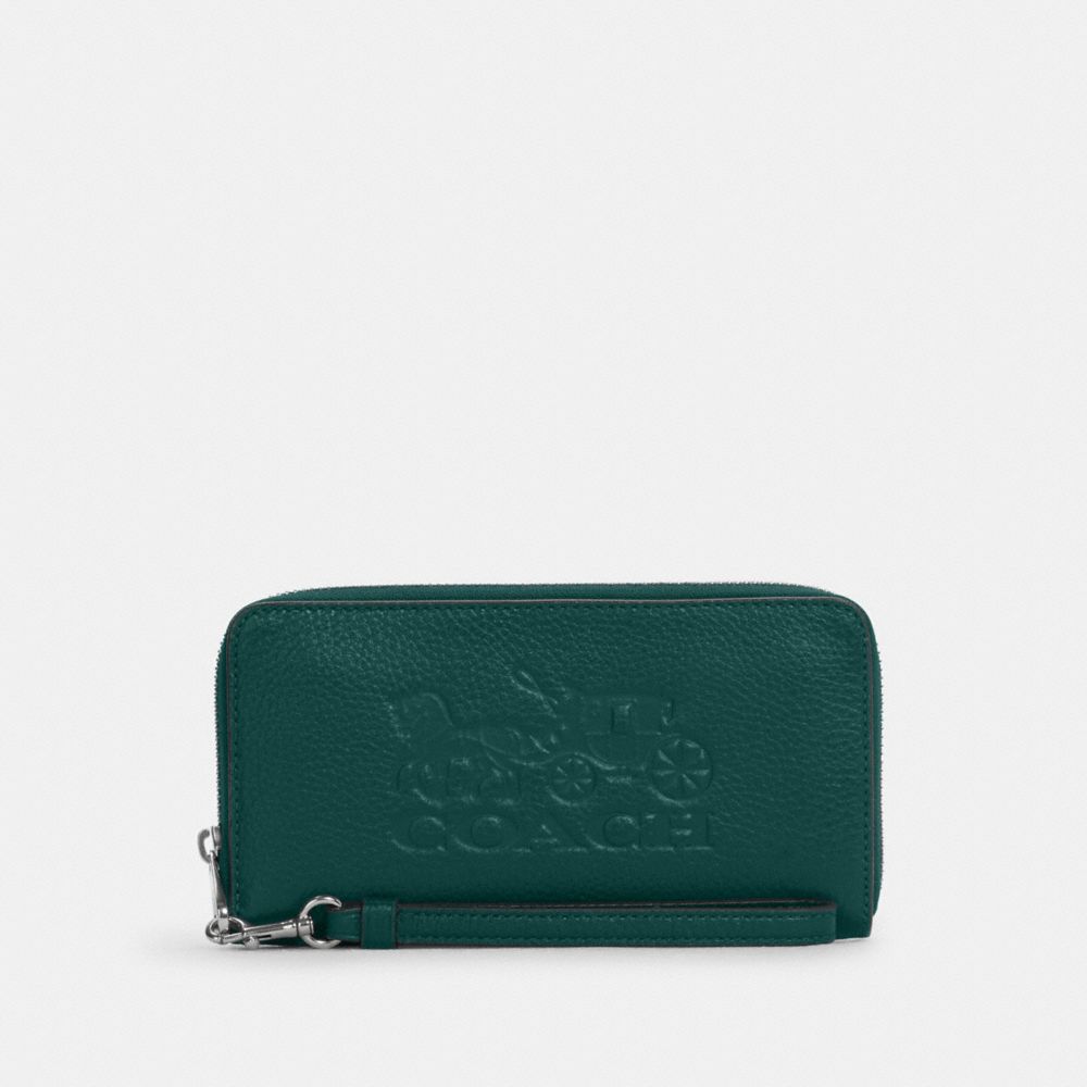 Refined pebble leather| Twelve credit card slots| Full-length bill compartments| Inside zip coin pocket| Zip-around closure| Detachable wrist strap| 7 1/2" (L) x 4" (H) x 1" (W)Style No. C3548