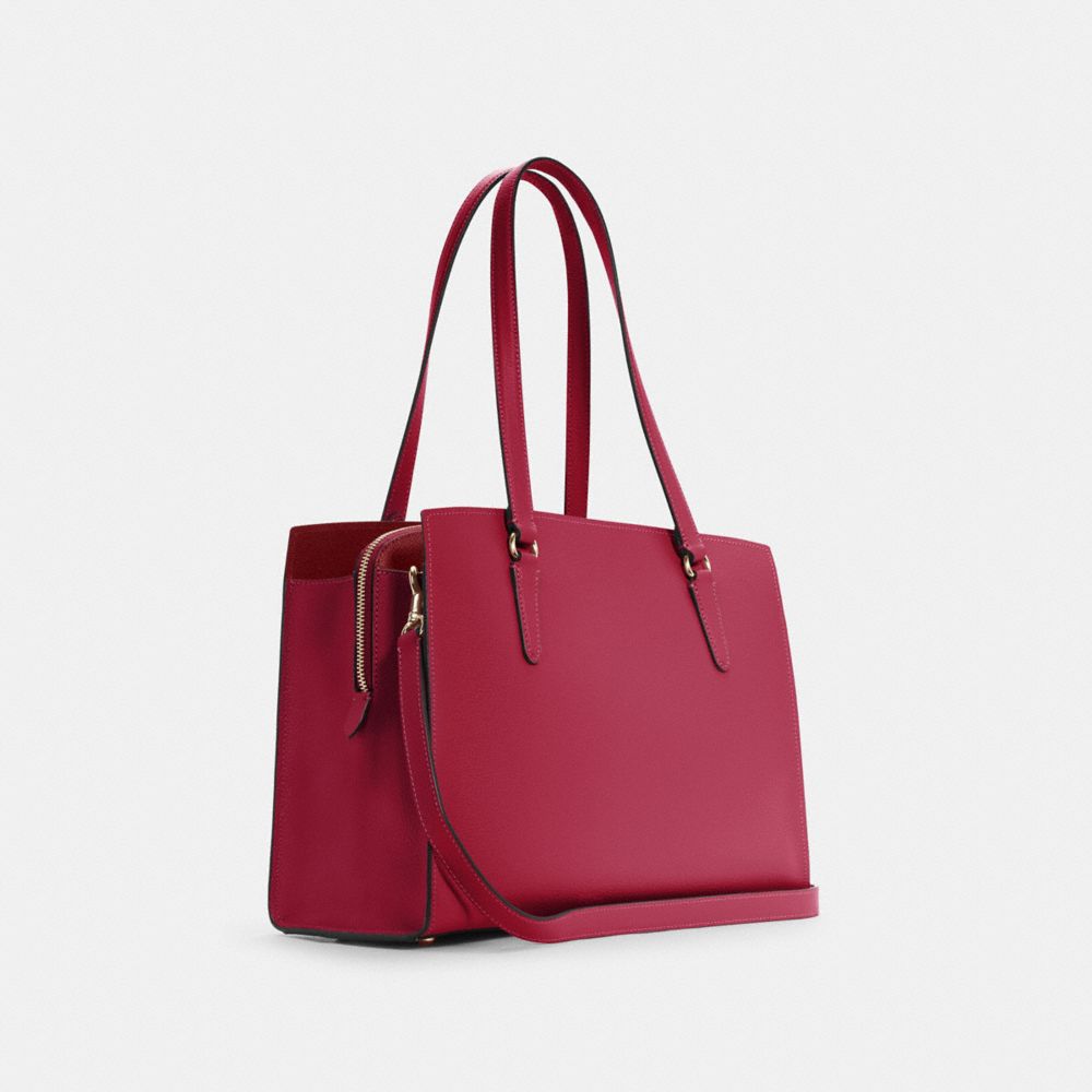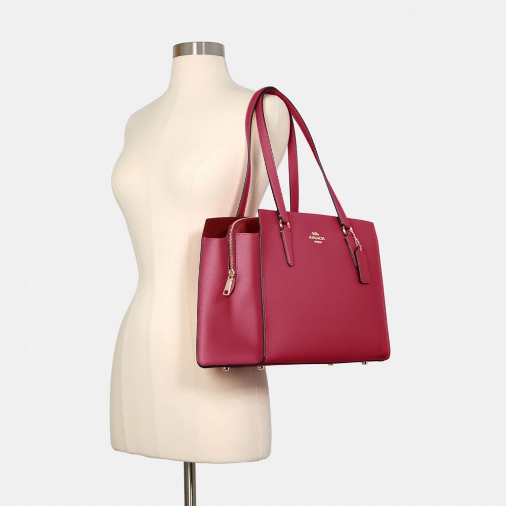 Double face crossgrain leather| Fits a 13" laptop| Inside cell phone and multifunction pockets| Zip closure, fabric lining| Side open compartments| Handles with 9" drop| Detachable strap with 19 1/2" drop for shoulder or crossbody wear| Four protective feet at base| 13 3/4" (L) x 10 1/4" (H) x 5 3/4" (W)