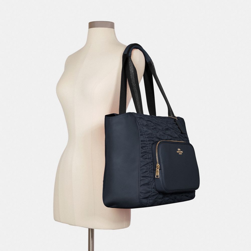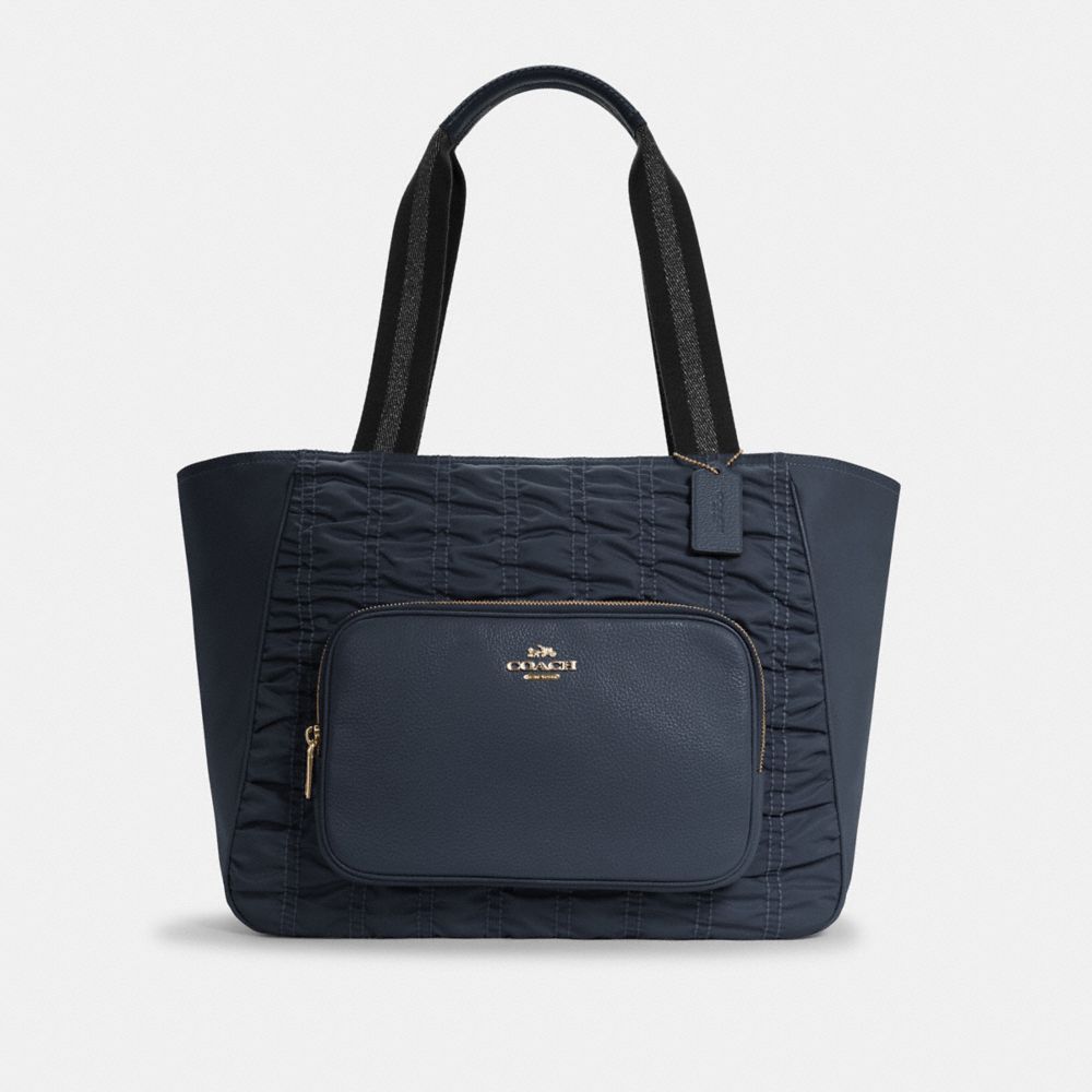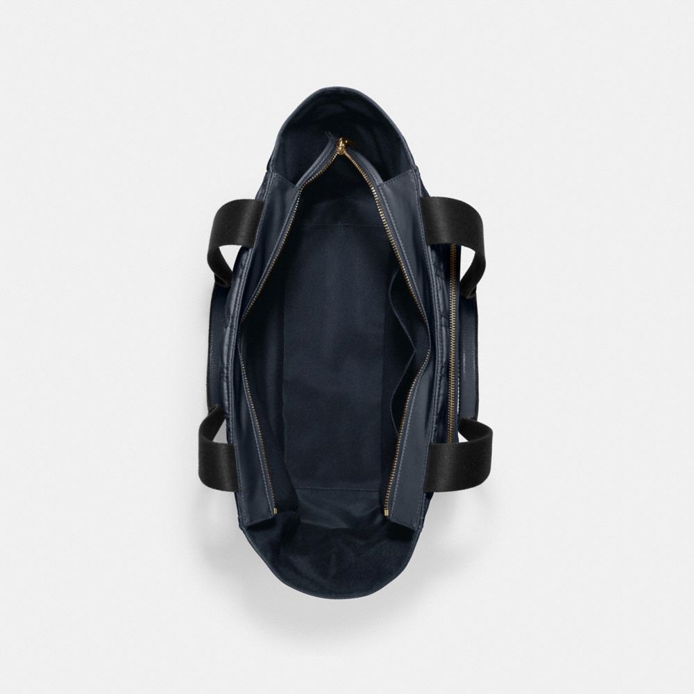 Nylon and refined pebble leather| Inside zip pocket| Zip-top closure, fabric lining| Handles with 10" drop| Outside zip pocket| Four protective feet at base| 15 1/2" (L) x 12 1/2" (H) x 5 3/4" (W)