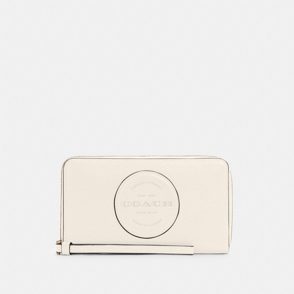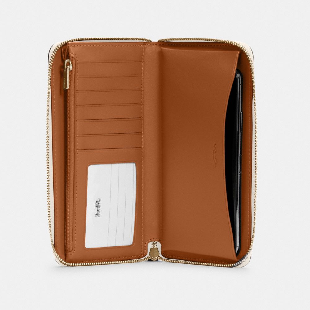 Refined pebble leather| Six credit card slots| ID window| Zip coin pocket| Inside phone pocket| Zip-around closure| Wrist strap attached| 7 1/4" (L) x 4" (H) x 3/4" (W)