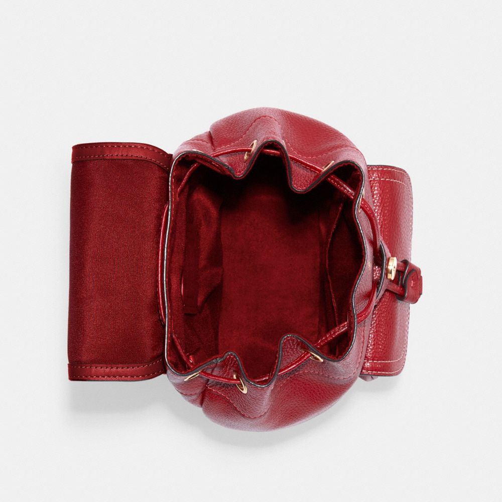 Refined pebble leather| Inside zip and multifunction pockets| Drawstring and snap closures, fabric lining| Handle with 1 1/2" drop| Outside snap pocket| Adjustable shoulder straps| 8 1/4" (L) x 8 3/4" (H) x 4" (W)
