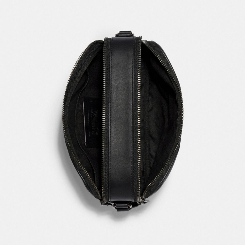 Signature coated canvas and smooth calf leather| Inside multifunction pockets| Double zip closure, fabric lining| Outside slip pocket| Adjustable strap with 25" drop for shoulder or crossbody wear| 9" (L) x 5 3/4" (H) x 2 3/4" (W)