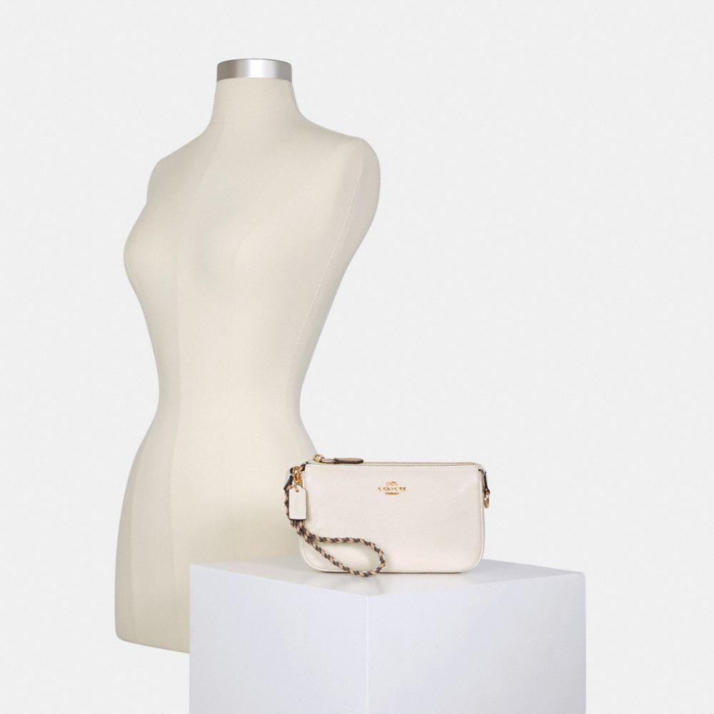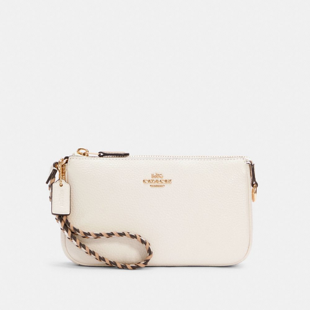 Refined pebble leather and smooth leather| Two credit card slots| Inside multifunction pocket| Zip-top closure, fabric lining| Handle with 6 1/4" drop| 7 1/2" (L) x 4 1/2" (H) x 2" (W)