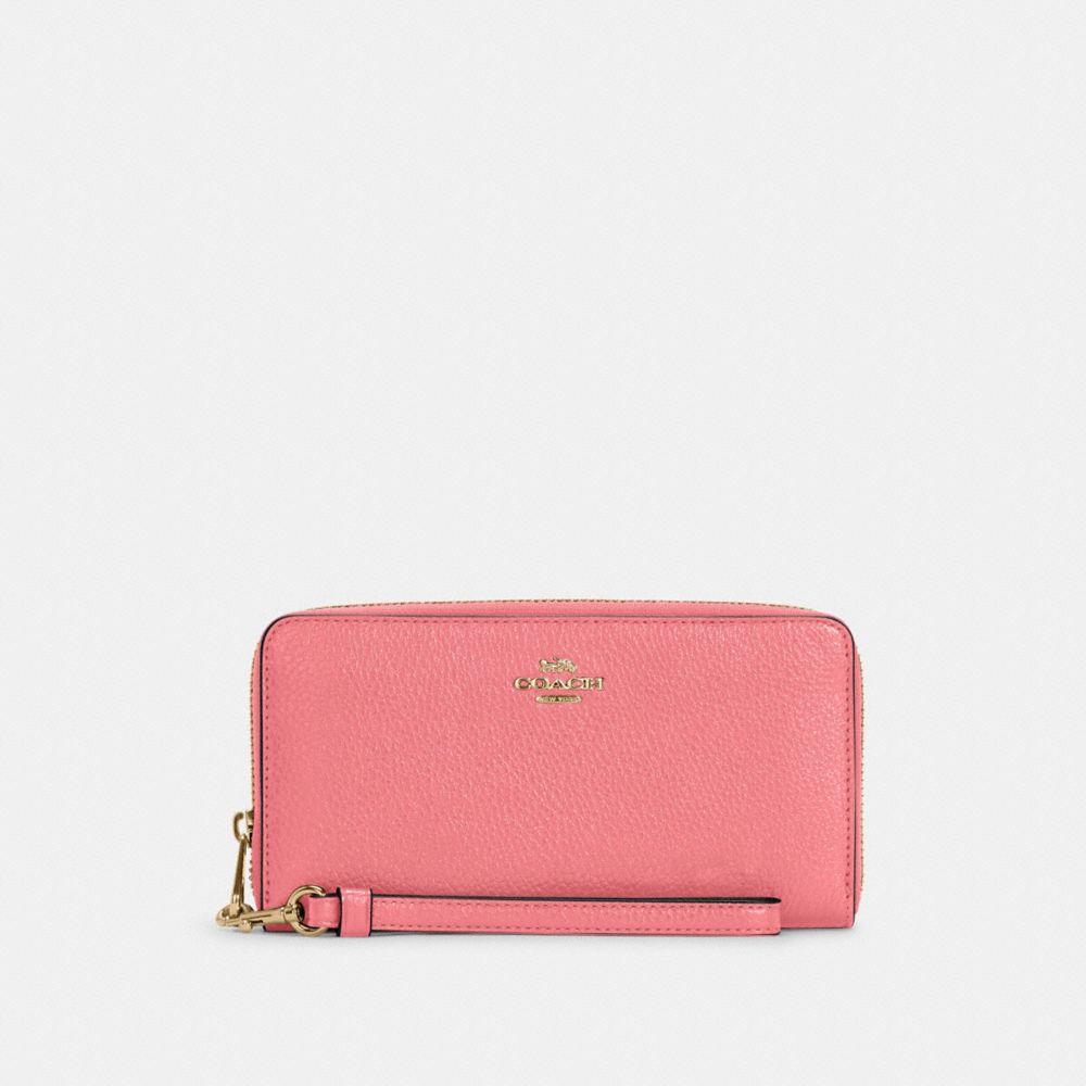 Refined pebble leather| Twelve credit card slots| Full-length bill compartments| Inside zip coin pocket| Zip-around closure| Detachable wrist strap| 7 1/2" (L) x 4" (H) x 1" (W)Style No. C4451