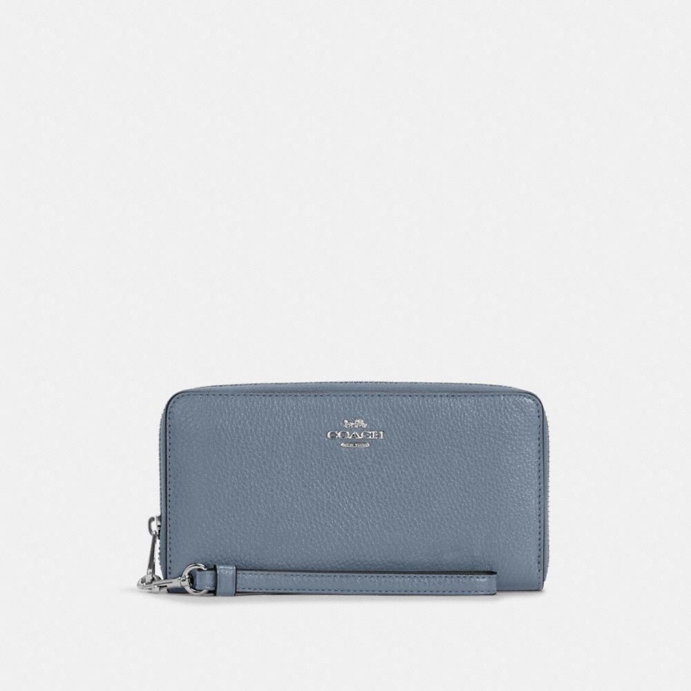 Refined pebble leather| Twelve credit card slots| Full-length bill compartments| Inside zip coin pocket| Zip-around closure| Detachable wrist strap| 7 1/2" (L) x 4" (H) x 1" (W)Style No. C4451