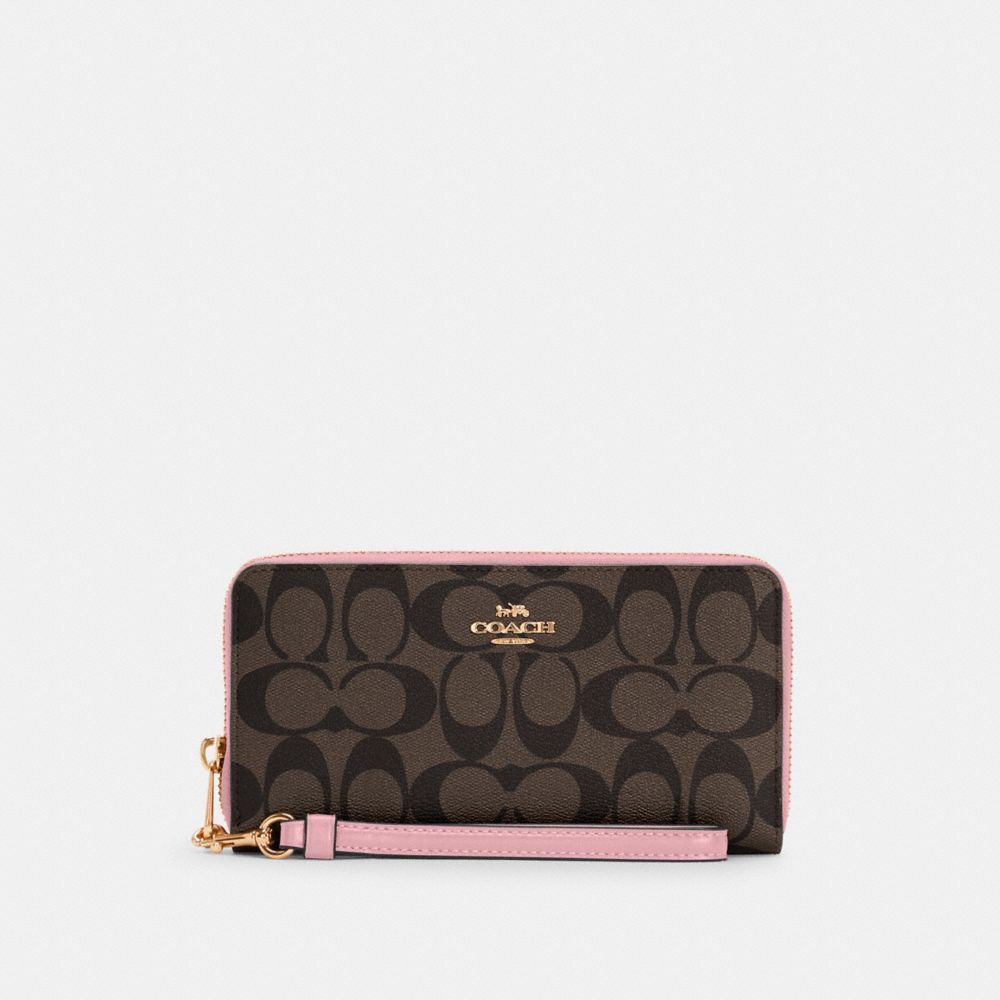 Signature coated canvas and smooth leather| Twelve credit card slots| Full-length bill compartments| Inside zip coin pocket| Zip-around closure| Detachable wrist strap| 7 1/2" (L) x 4" (H) x 1" (W)Style No. C4452