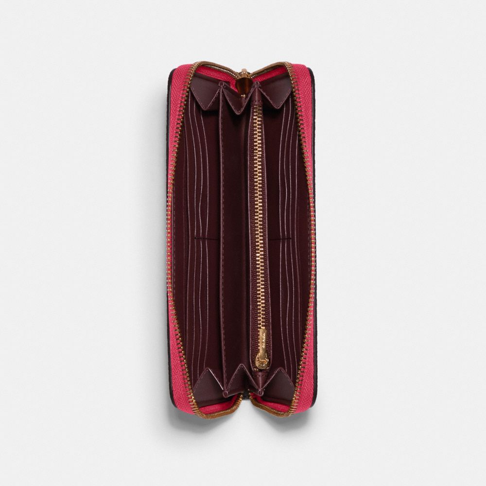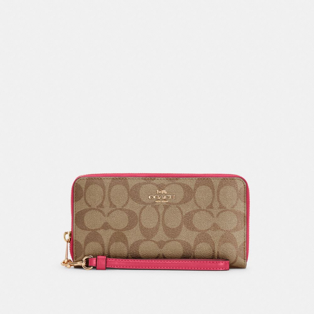Signature coated canvas and smooth leather| Twelve credit card slots| Full-length bill compartments| Inside zip coin pocket| Zip-around closure| Detachable wrist strap| 7 1/2" (L) x 4" (H) x 1" (W)Style No. C4452