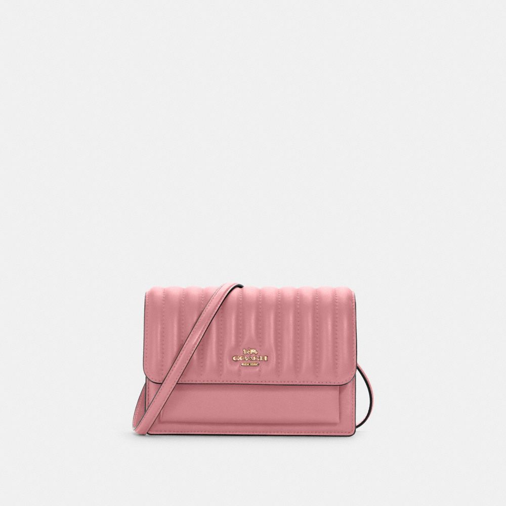 Nappa leather and smooth leather| Inside zip and multifunction pockets| Snap closure, fabric lining| Adjustable strap for wear at waist| Detachable strap with 23 1/2" drop for shoulder or crossbody wear| 7" (L) x 5" (H) x 2 1/4" (W)Style No. C4462