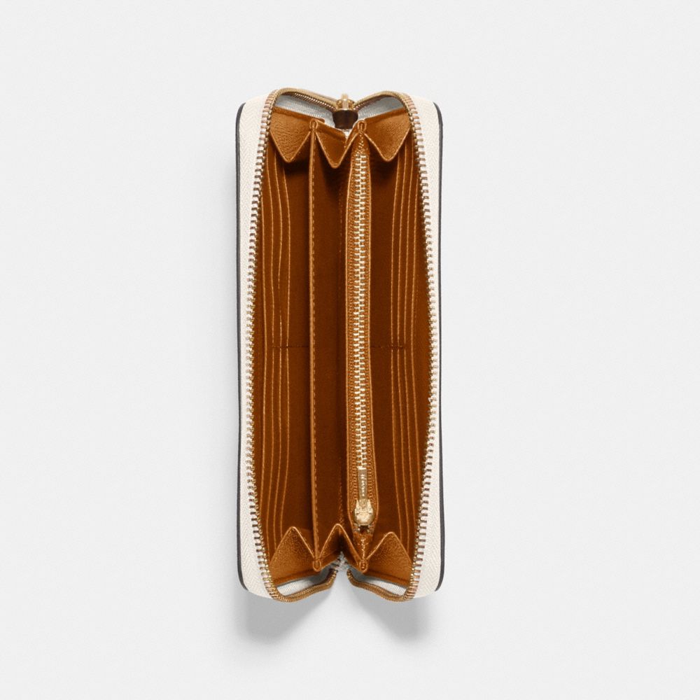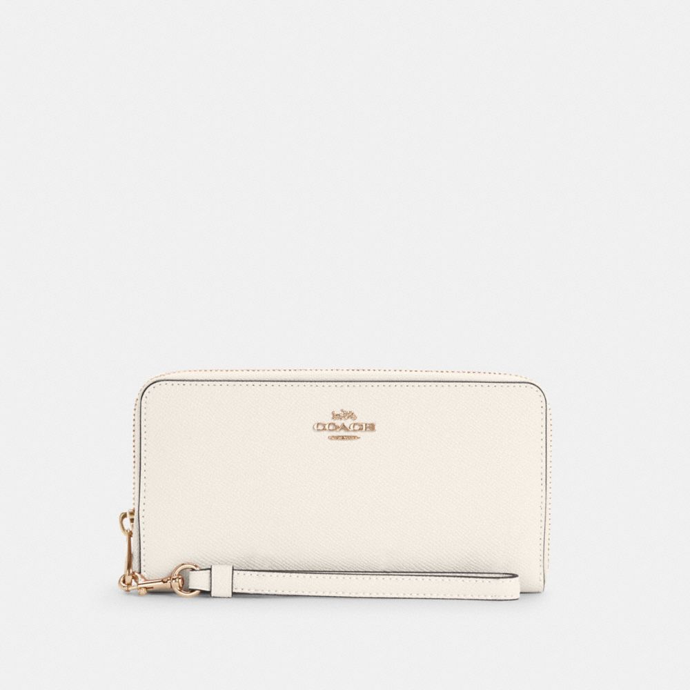 Crossgrain leather| Twelve credit card slots| Full-length bill compartments| Inside zip coin pocket| Zip-around closure| Detachable wrist strap| 7 1/2" (L) x 4" (H) x 1" (W)