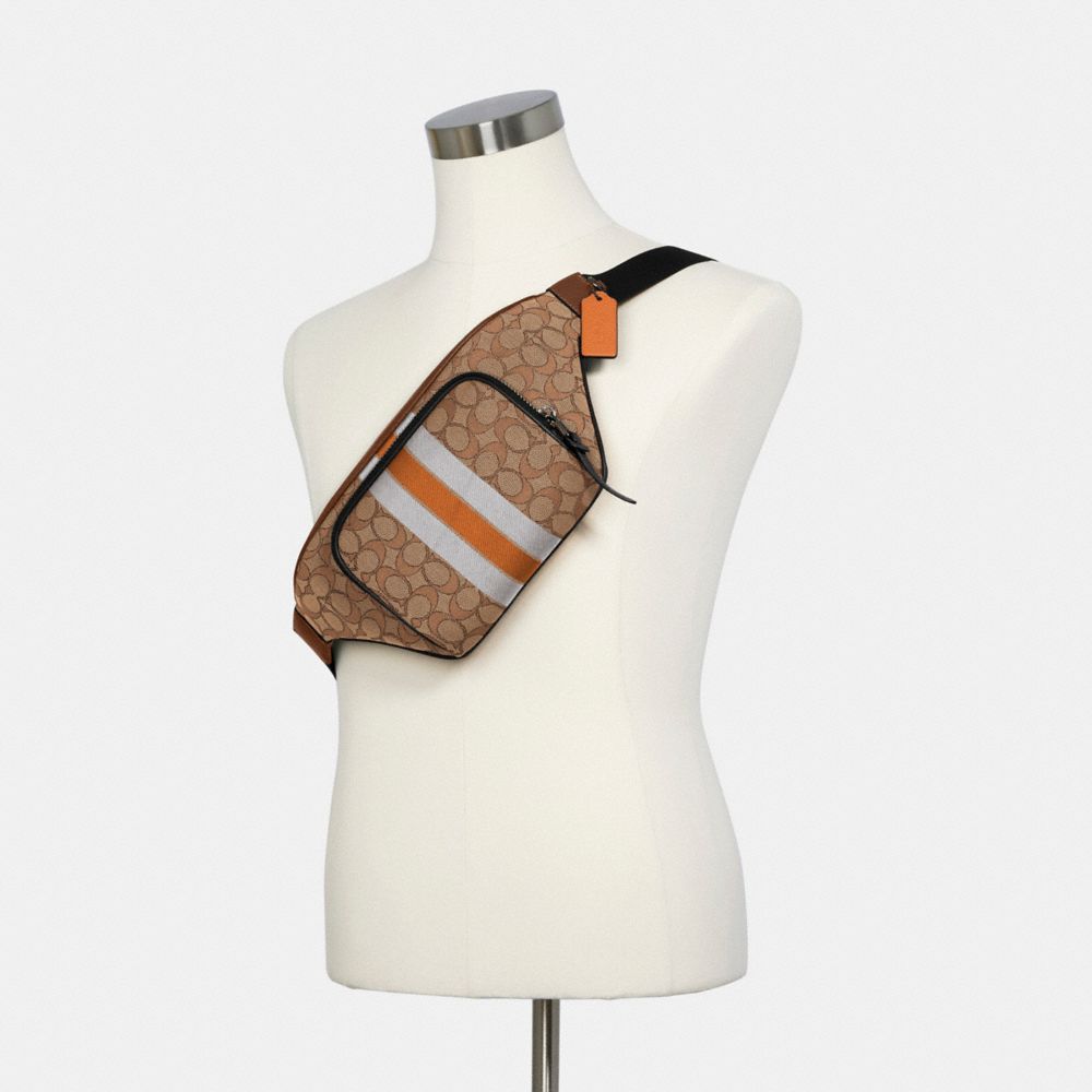 THOMPSON BELT BAG IN SIGNATURE JACQUARD WITH VARSITY STRIPE