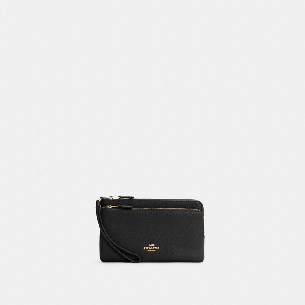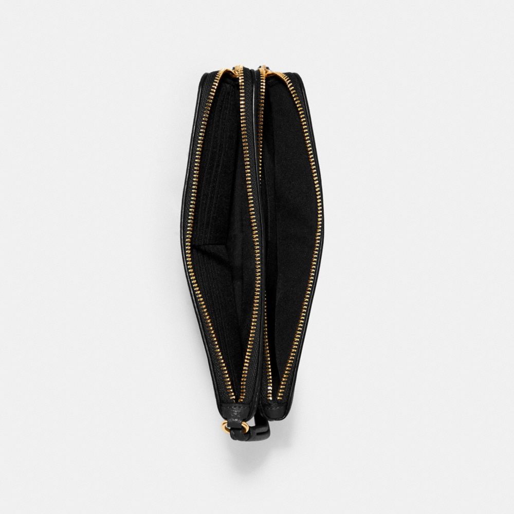 Refined pebble leather| Six credit card slots| Full-length bill compartment| Inside open pockets| Double zip closure, fabric lining| Wrist strap attached| 8" (L) x 4 3/4" (H) x 1 1/4" (W)| Fits all phone sizes up to an iPhone X and Samsung S7 Edge