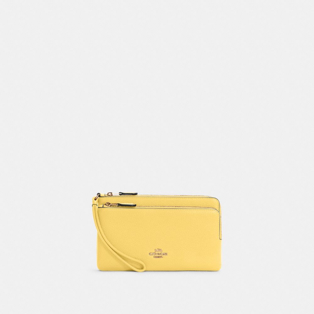 Refined pebble leather| Eight credit card slots| Inside open pockets| Double zip closure, fabric lining| Wrist strap attached| 8" (L) x 4 3/4" (H) x 1" (W)| Fits all phone sizes up to an iPhone X and Samsung S7 EdgeStyle No. C5610