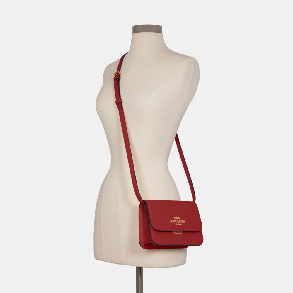 Crossgrain leather| Two credit card slots| Inside zip pocket| Pushlock closure, fabric lining| Outside open pocket| Detachable strap with 21 1/2" drop for shoulder or crossbody wear| 7 1/4" (L) x 5 1/4" (H) x 2 3/4" (W)Style No. C5626