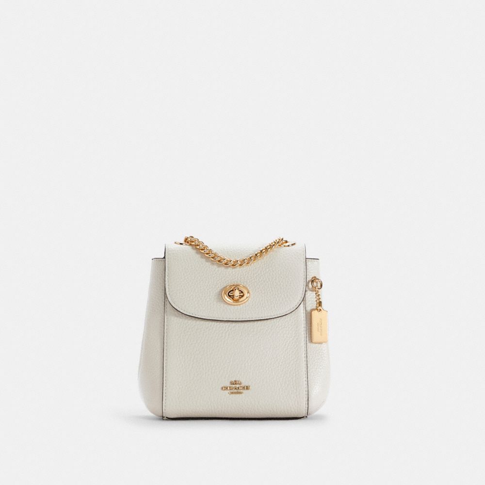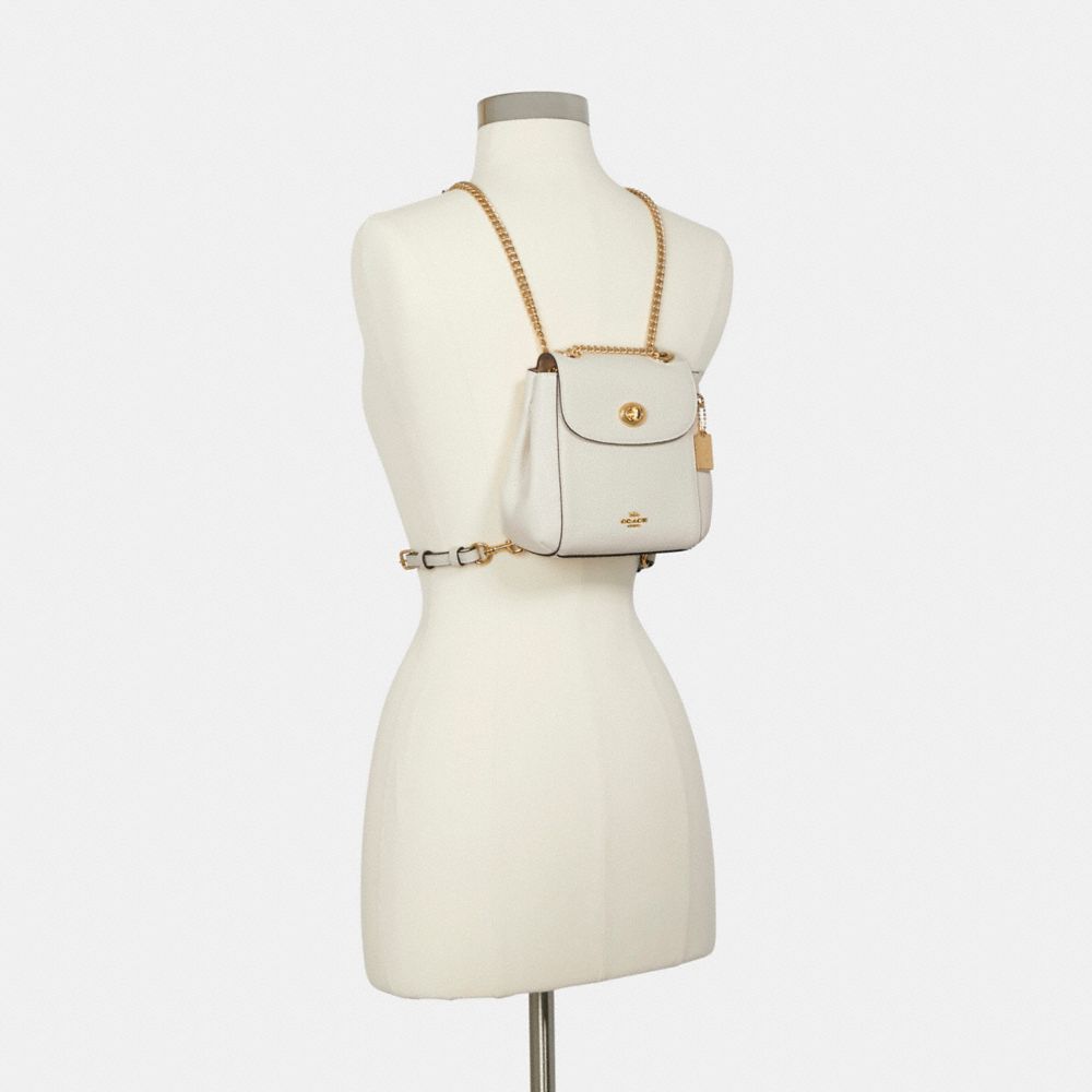 Refined pebble leather| Inside multifunction pocket| Turnlock closure, fabric lining| Adjustable straps convert bag to a shoulder bag from a backpack| 7 1/4" (L) x 6 1/2" (H) x 3 1/4" (W)Style No. C5677