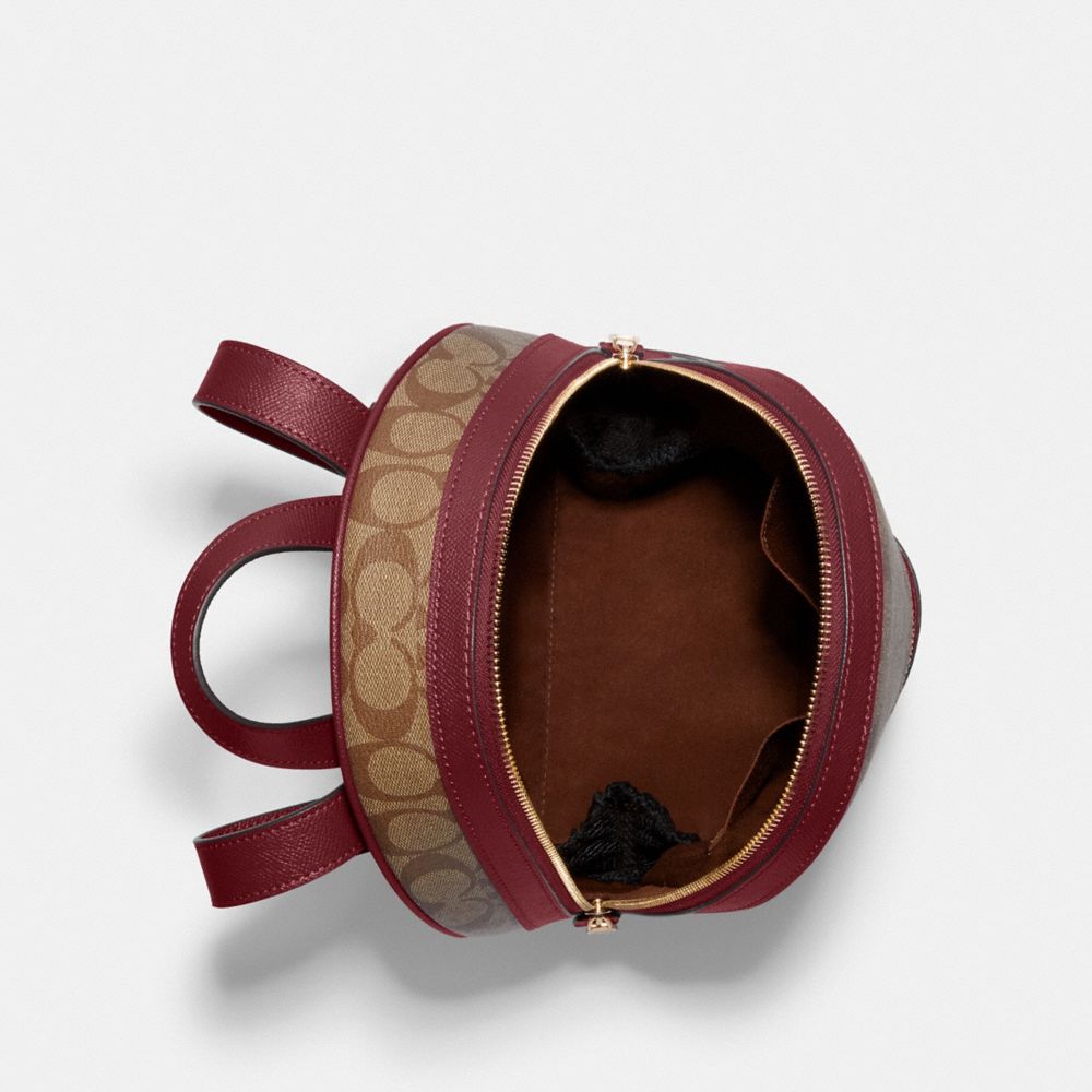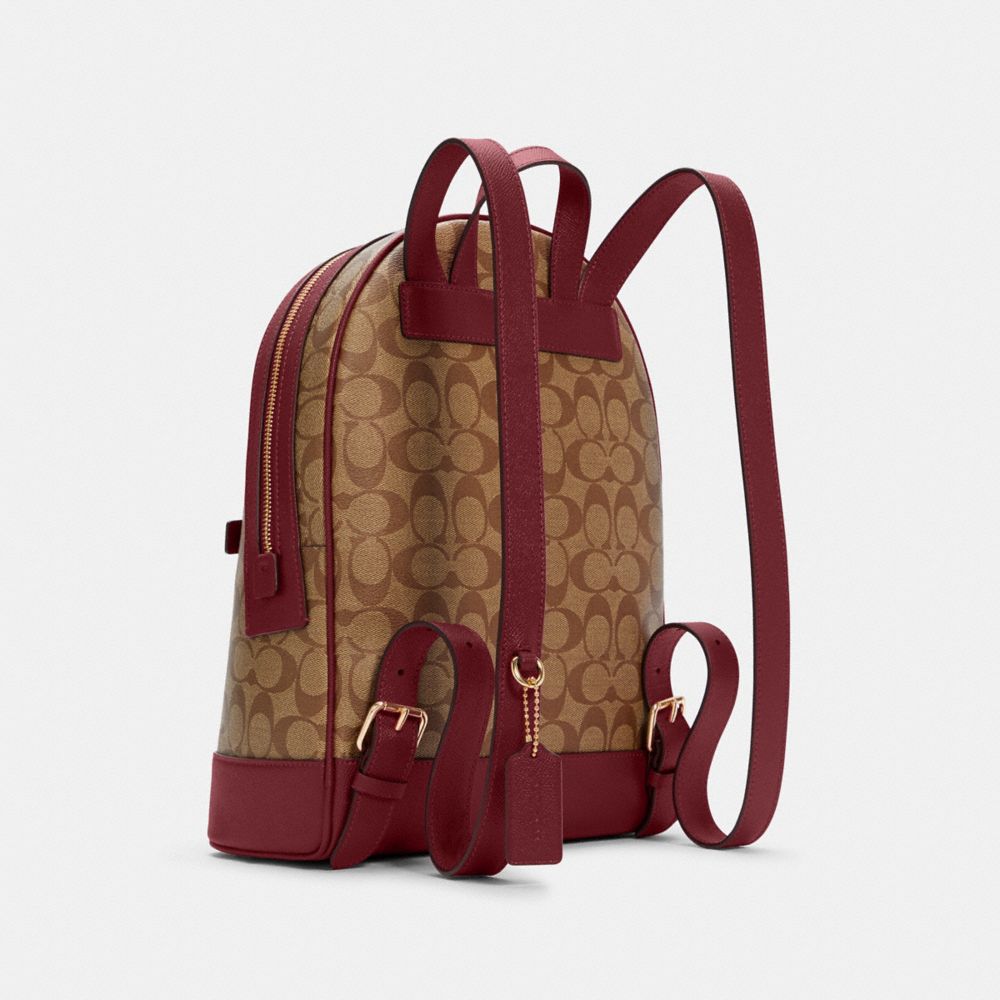 Signature coated canvas and crossgrain leather| Inside zip, cell phone and multifunction pockets| Zip closure, fabric lining| Top handle with 3 1/4" drop| Outside zip pocket| Adjustable shoulder straps| 10" (L) x 14" (H) x 5 1/2" (W)Style No. C5679