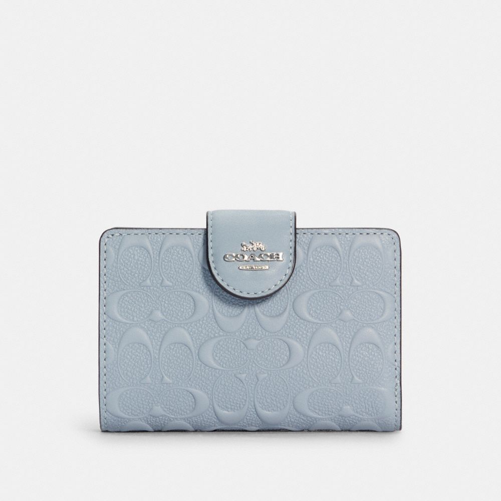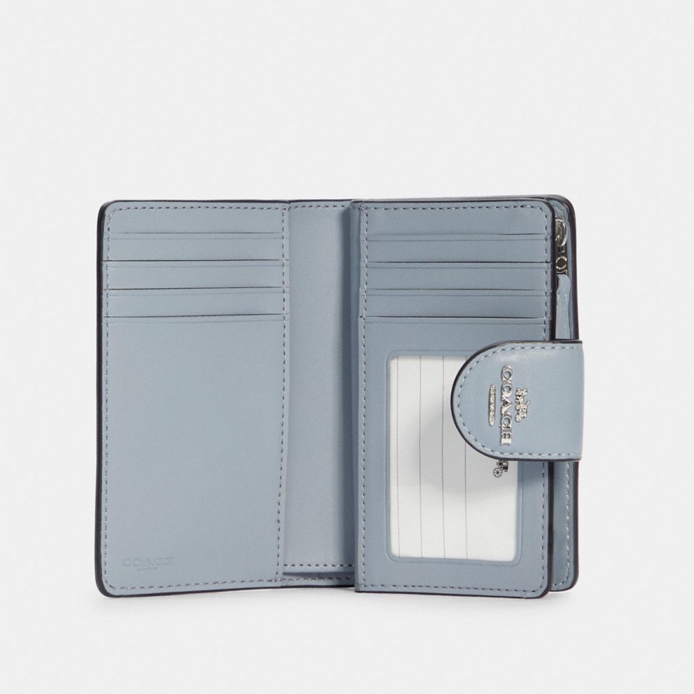 Signature smooth calf leather and smooth leather| Seven credit card slots| Bill compartment| ID window| Snap closure| Zip coin pocket| 5" (L) x 3 1/2" (H) x 1/2" (W)