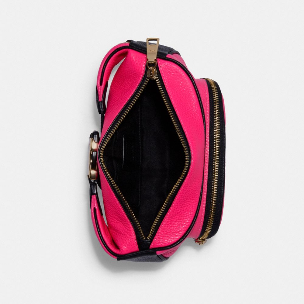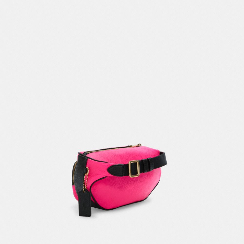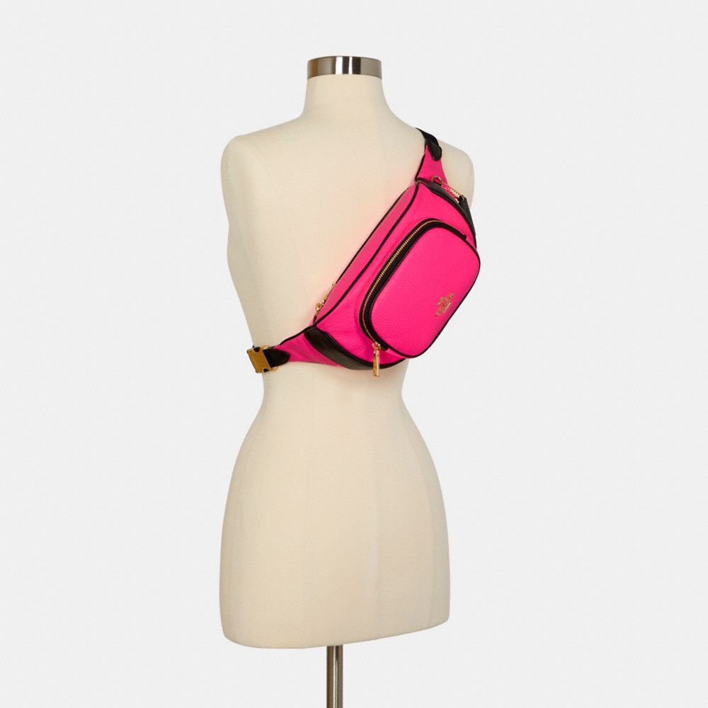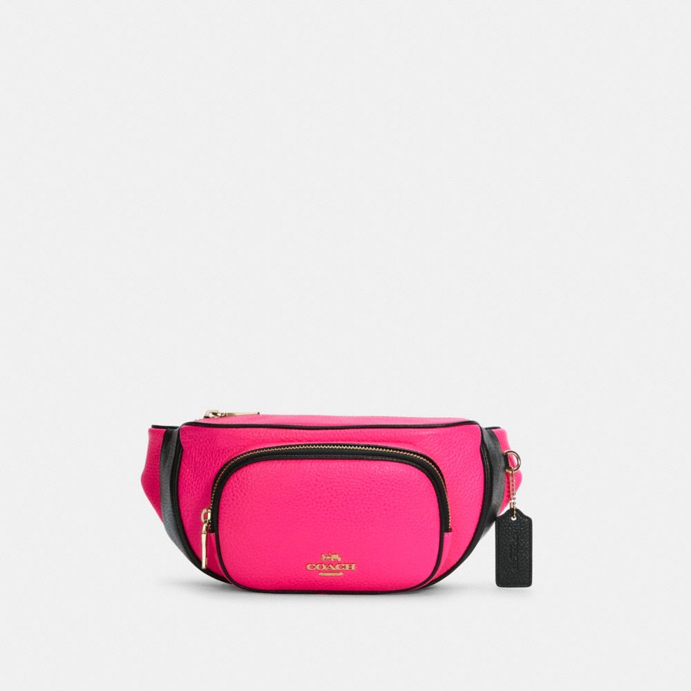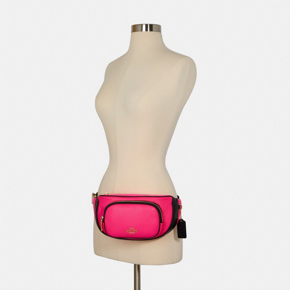 Refined pebble leather| Inside multifunction pocket| Zip closure, fabric lining| Outside zip pocket| Adjustable strap for wear at waist| 9 1/4" (L) x 5" (H) x 1 3/4" (W)