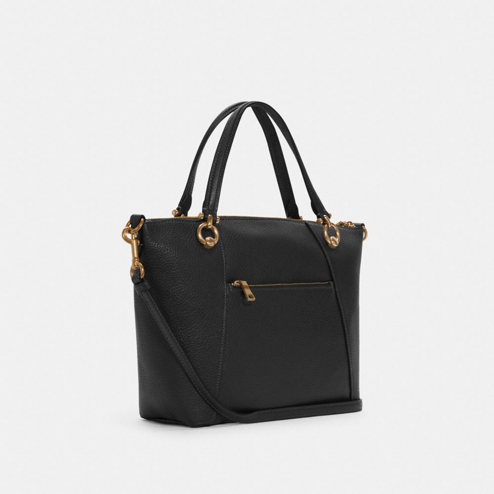 Refined leather| Inside zip pocket| Zip-top closure, fabric lining| Handles with 5" drop| Outside zip pocket| Detachable strap with 22" drop for shoulder or crossbody wear| 8 1/4" (L) x 8 1/2" (H) x 3 3/4" (W)Style No. C6229
