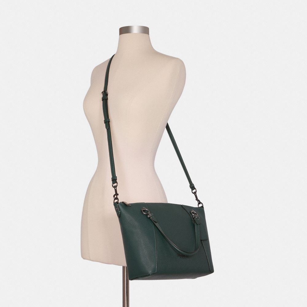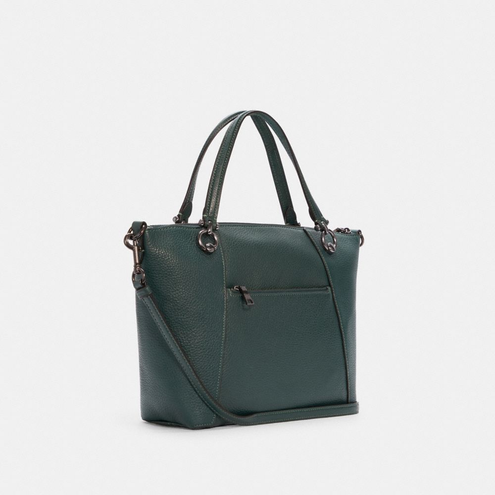 Refined leather| Inside zip pocket| Zip-top closure, fabric lining| Handles with 5" drop| Outside zip pocket| Detachable strap with 22" drop for shoulder or crossbody wear| 8 1/4" (L) x 8 1/2" (H) x 3 3/4" (W)Style No. C6229
