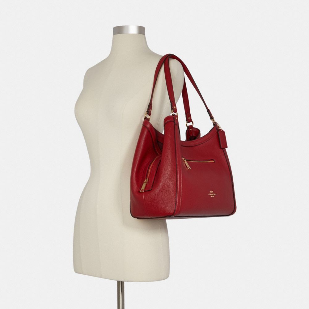 Refined pebble leather| Inside zip, cell phone and multifunction pockets| Center zip compartment| Snap closure, fabric lining| Handles with 9 1/2" drop| Outside zip pocket| 12 1/2" (L) x 10 3/4" (H) x 5 3/4" (W)Style No. C6231