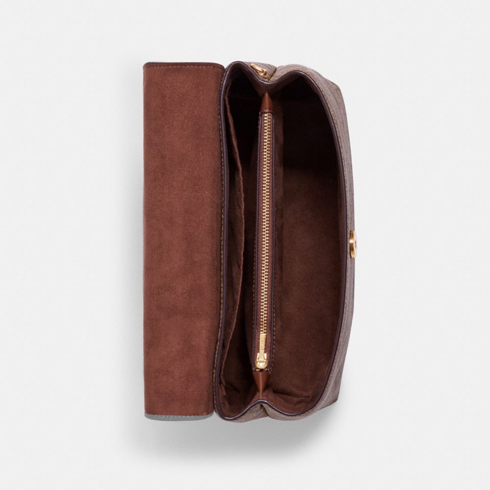 Signature coated canvas and refined leather| Inside zip and multifunction pockets| Magnetic snap closure, fabric lining| Outside open pocket| Handles convert to shoulder strap with 21 3/4" drop| 10 1/4" (L) x 6 3/4" (H) x 3 3/4" (W)Style No. C6784