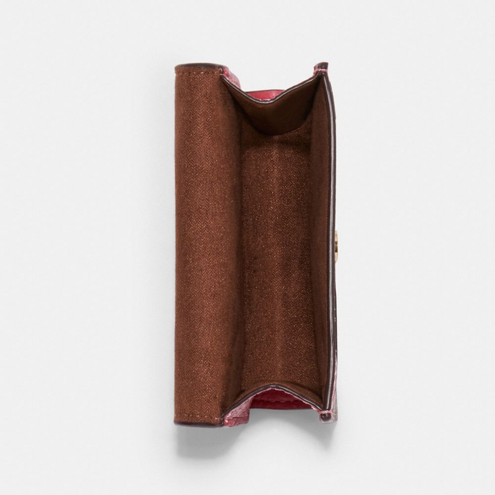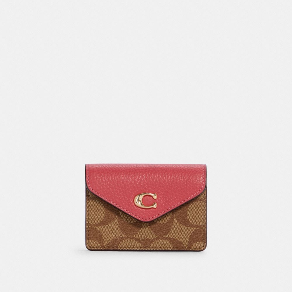 Signature coated canvas and refined pebble leather| One credit card slot| Snap closure| Outside slip pocket| 4" (L) x 3" (H) x 1 1/4" (W)Style No. C6889