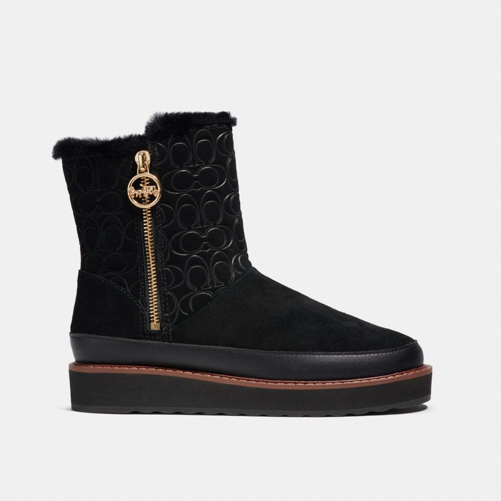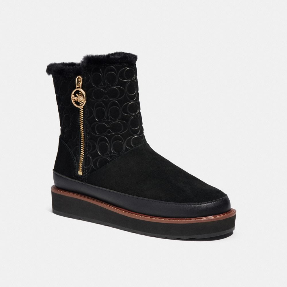 Suede and man-made leather upper| Faux fur lining and footbed| Rubber outsole| Zip closure| Shaft: 5 3/4" height, 12" circumference| 1/2" heelStyle No. C7022