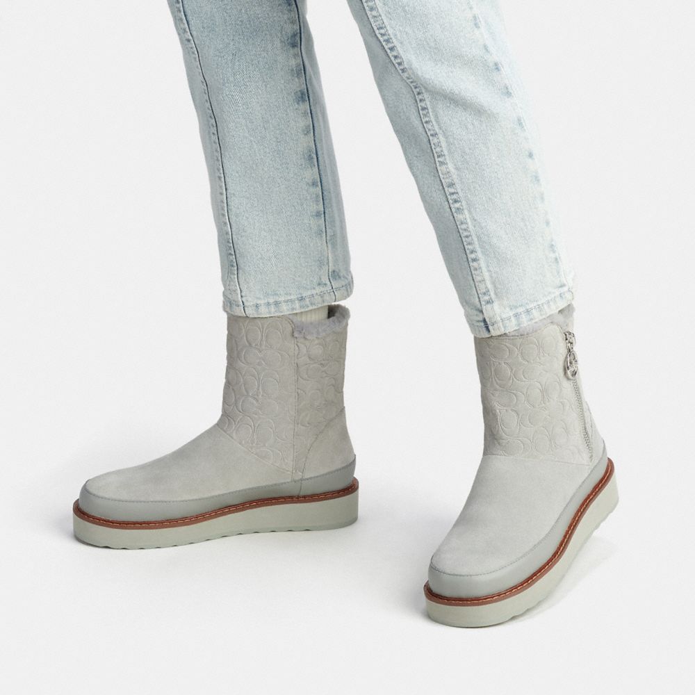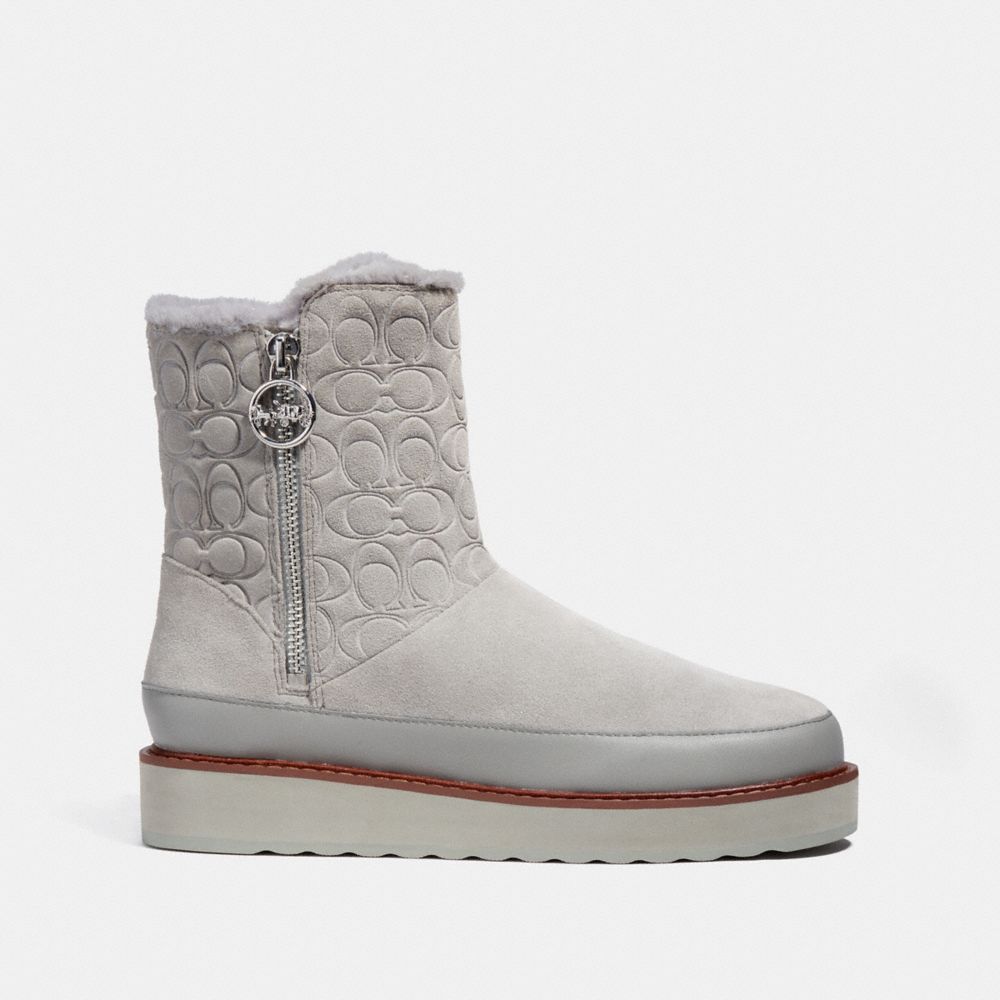 Suede and man-made leather upper| Faux fur lining and footbed| Rubber outsole| Zip closure| Shaft: 5 3/4" height, 12" circumference| 1/2" heelStyle No. C7022