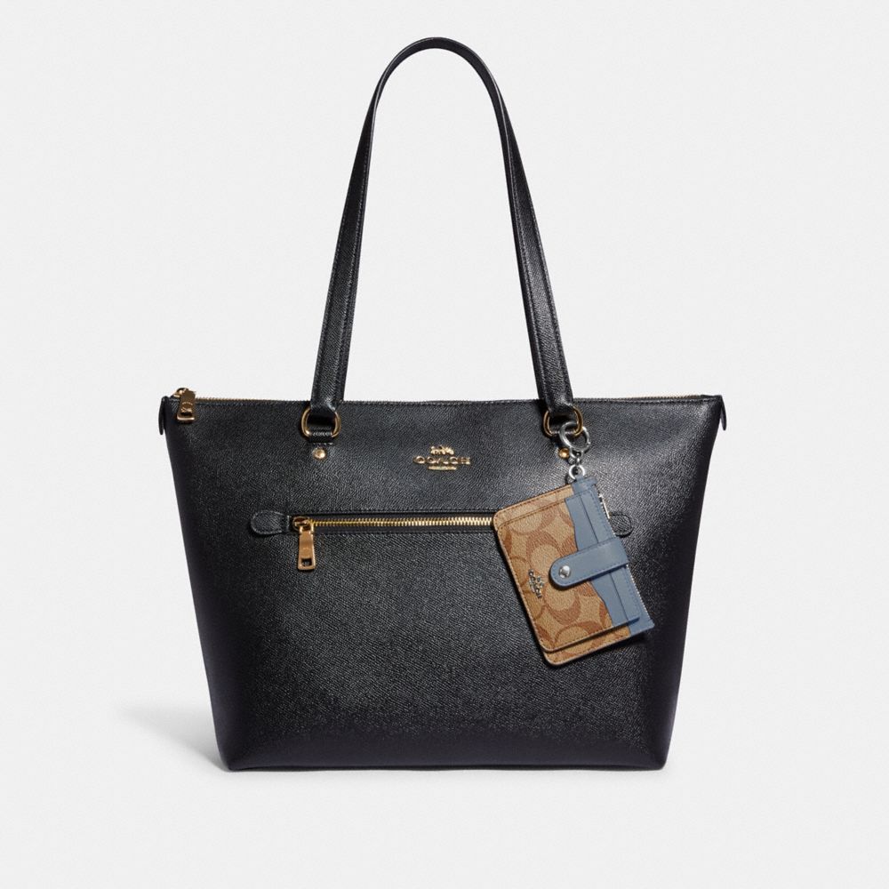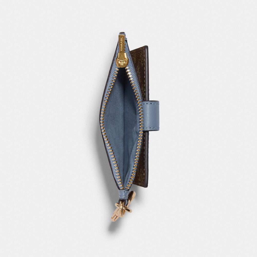 Signature coated canvas and smooth leather| Three credit card slots| ID window| Snap closure| Zip compartment| Attached hinged key ring| 4 3/4" (L) x 3" (H)Style No. C7398