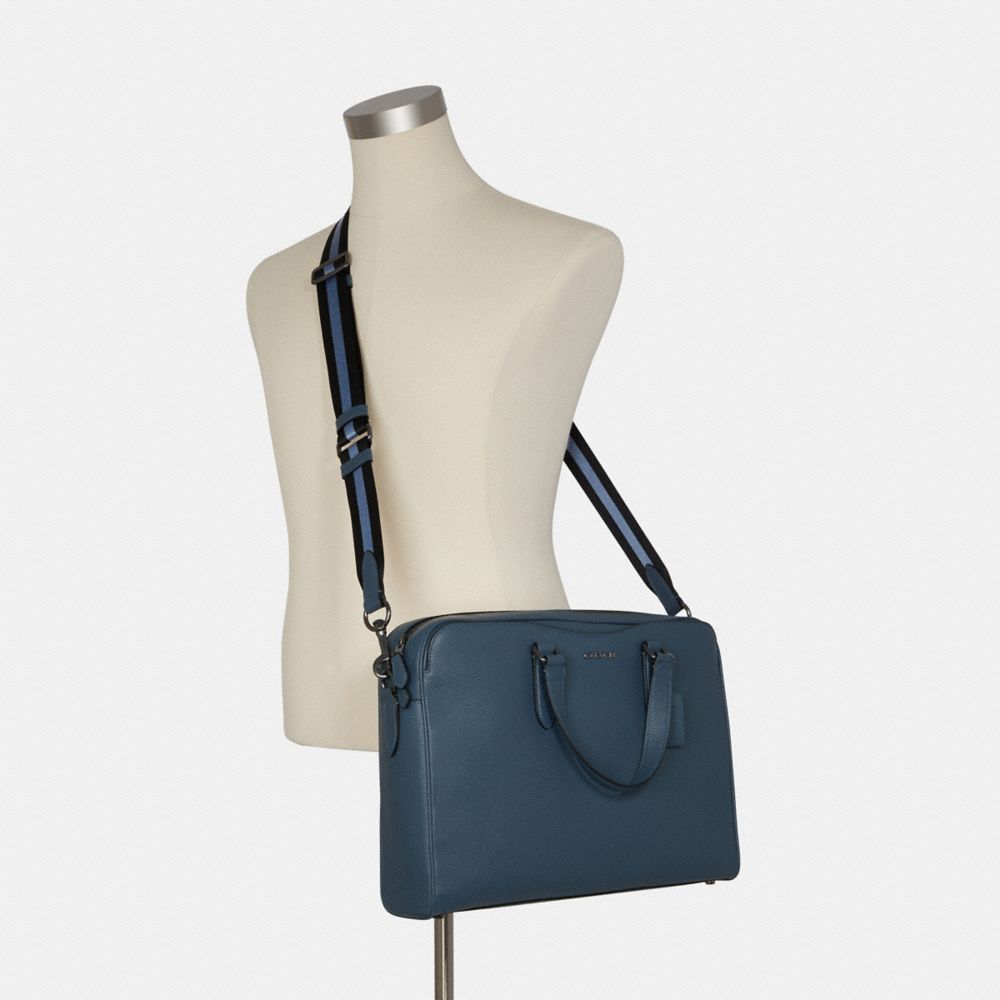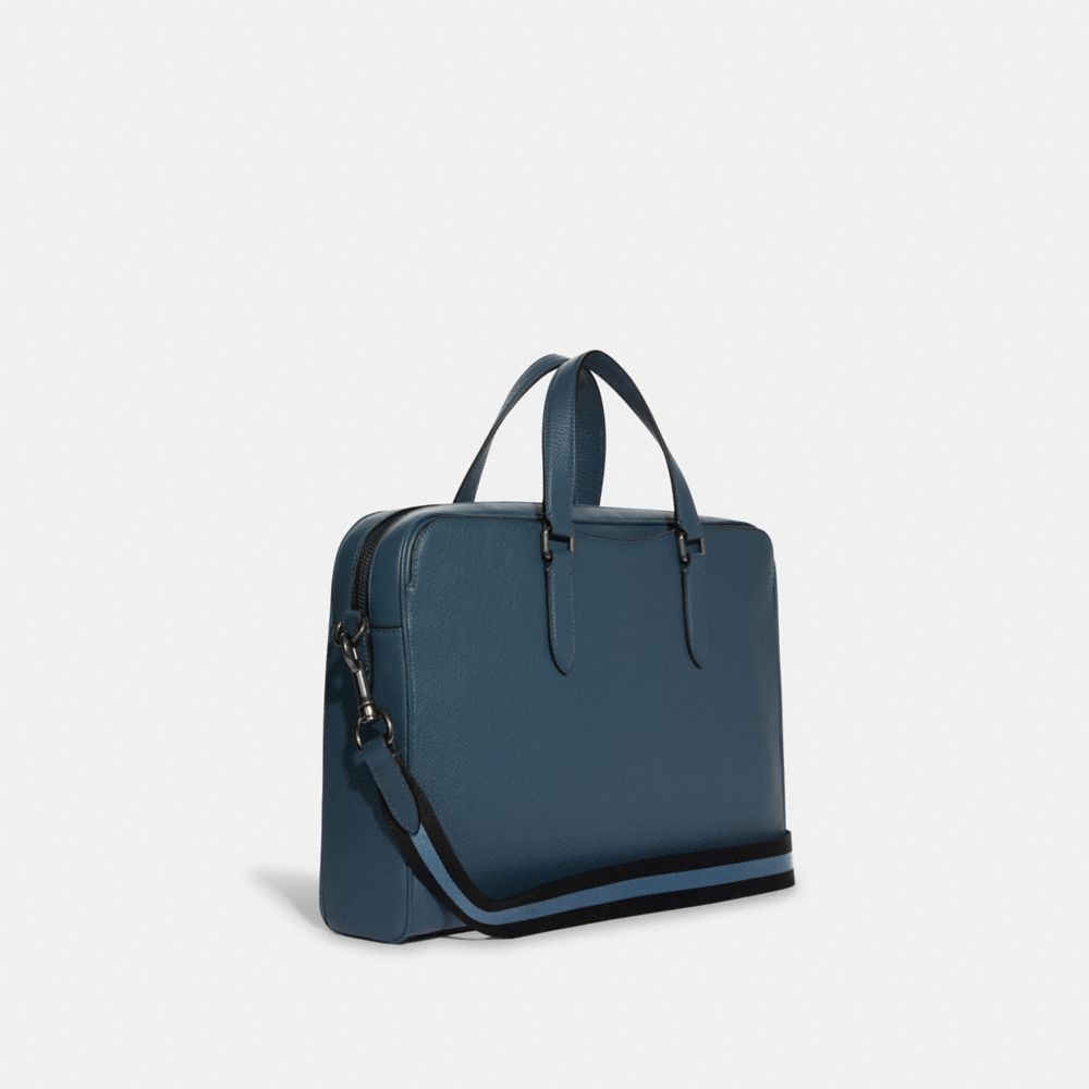 Refined pebble leather| Four credit card slots| Inside zip and multifunction pockets| Inside laptop sleeve with secure tab| Zip closure, fabric lining| Handles with 5" drop| Outside snap pockets| Detachable strap with 25" drop for shoulder or crossbody wear| Four protective feet at base| 15 1/2" (L) x 11" (H) x 3 1/4" (W)Style No. C8174