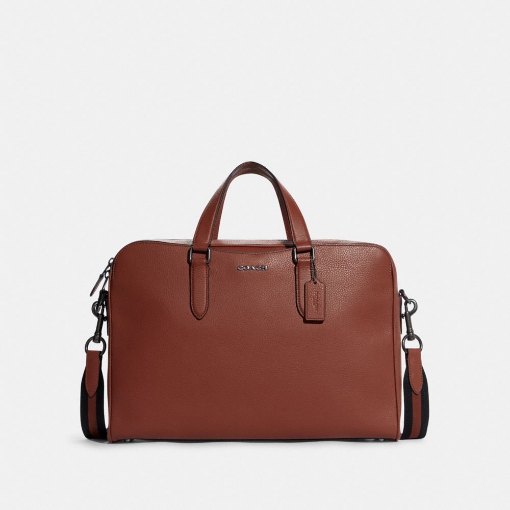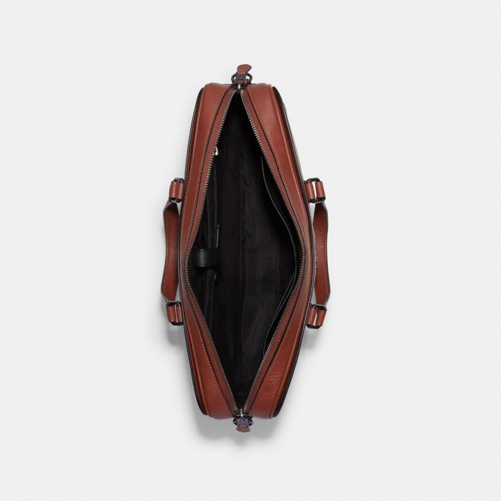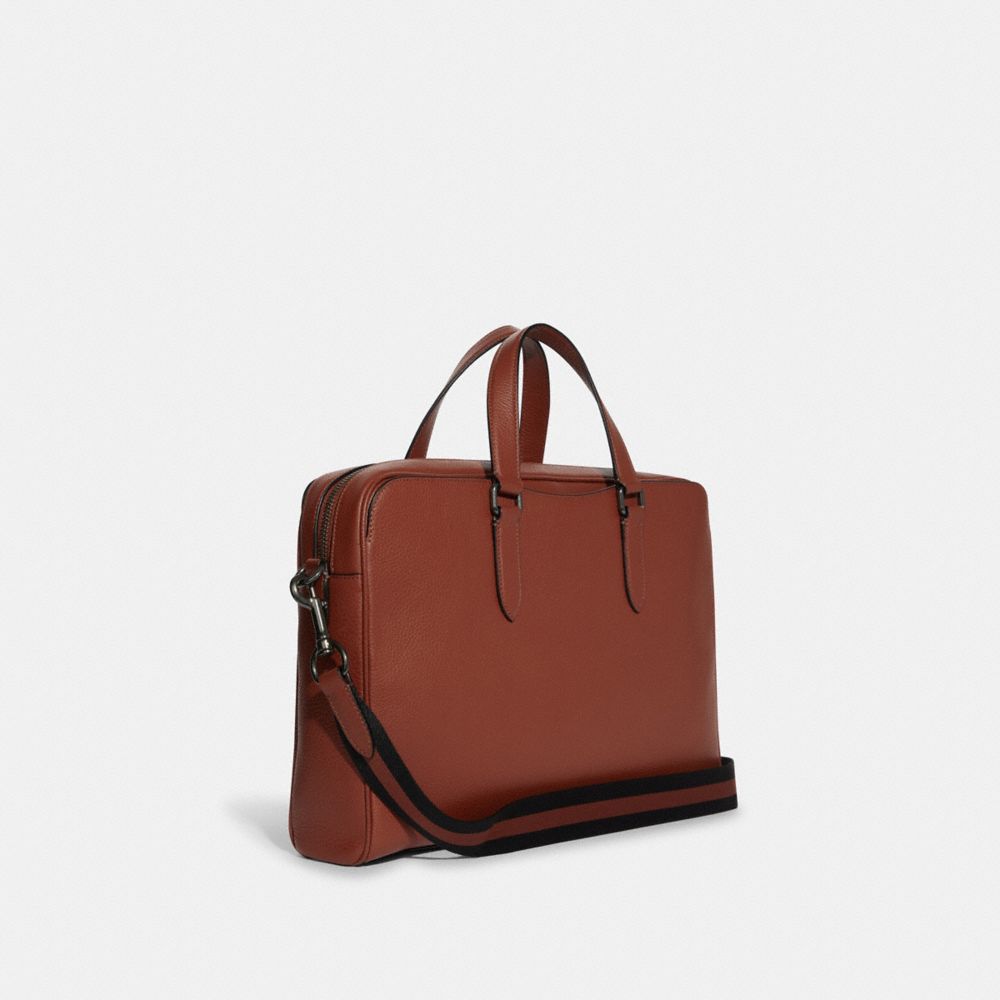 Refined pebble leather| Four credit card slots| Inside zip and multifunction pockets| Inside laptop sleeve with secure tab| Zip closure, fabric lining| Handles with 5" drop| Outside snap pockets| Detachable strap with 25" drop for shoulder or crossbody wear| Four protective feet at base| 15 1/2" (L) x 11" (H) x 3 1/4" (W)Style No. C8174