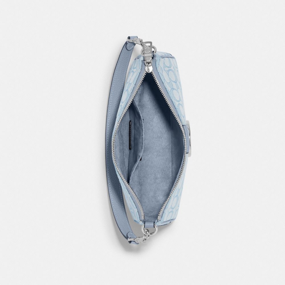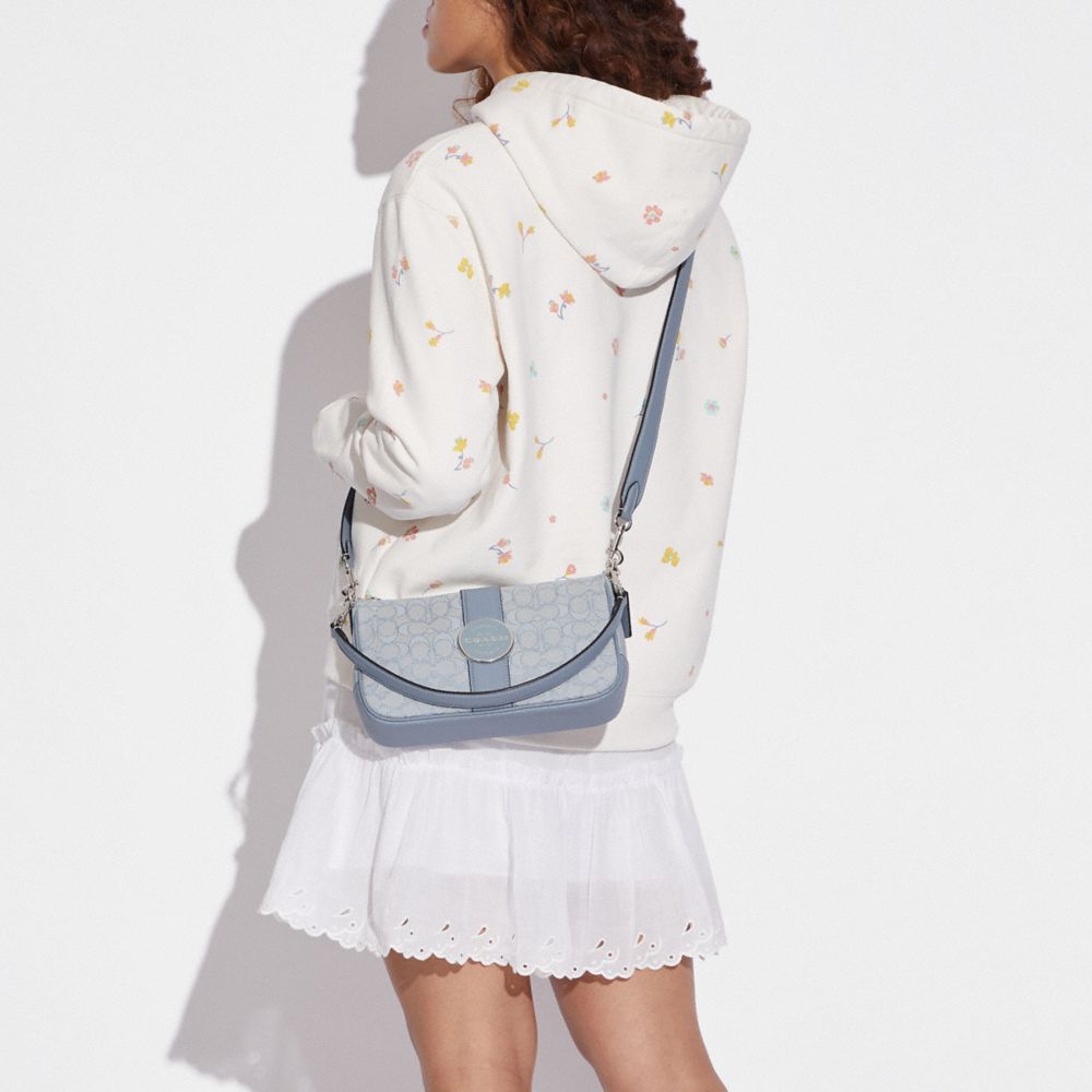 Signature jacquard and refined pebble leather| Inside multifunction pocket| Zip-top closure, fabric lining| Detachable handle with 8 1/4" drop| Detachable strap with 22" drop for shoulder or crossbody wear| 9 3/4" (L) x 5 3/4" (W) x 2 3/4" (W)Style No. C8306