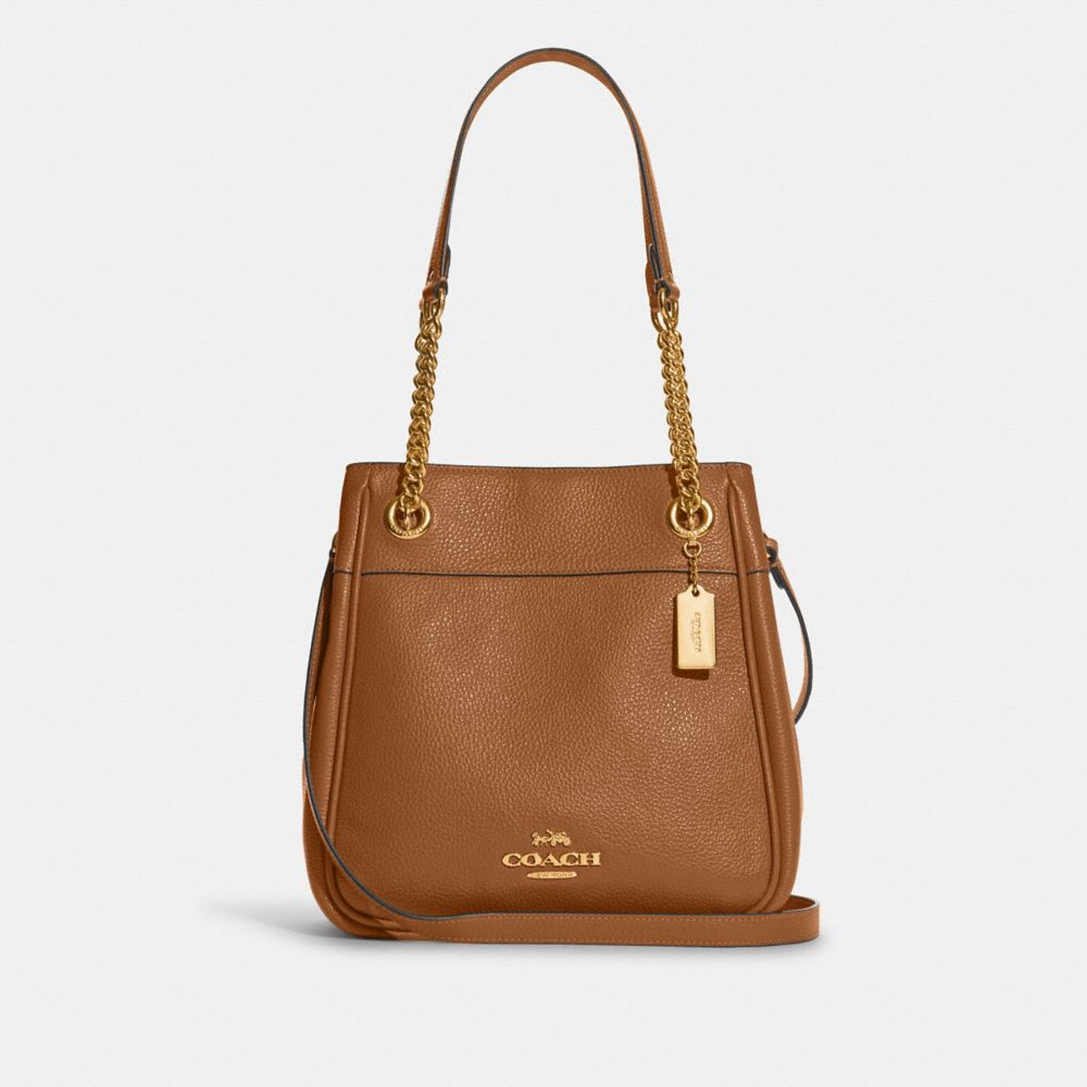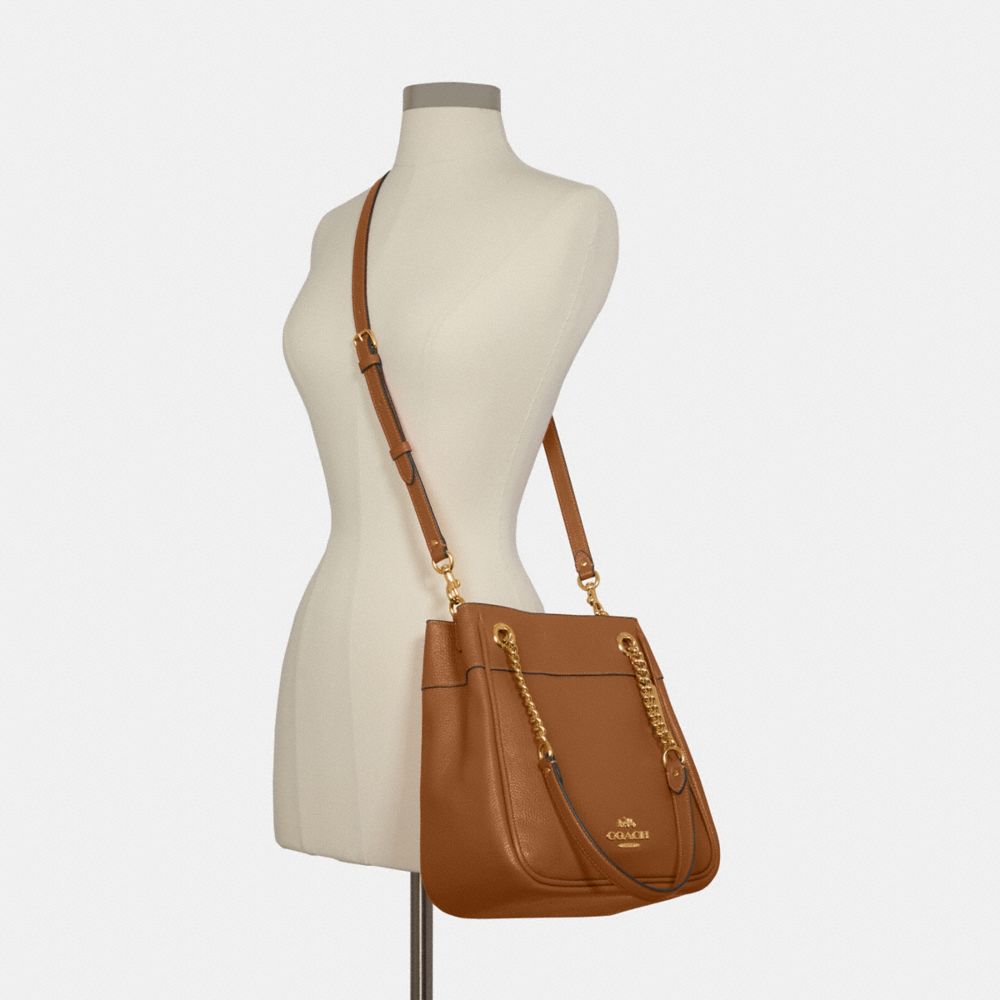 Refined pebble leather| Center zip compartment| Snap closure, fabric lining| Handles with 9" drop| Detachable strap with 20 3/4" drop for shoulder or crossbody wear| 9 1/4" (L) x 10 1/4" (H) x 4 3/4" (W)Style No. C8315