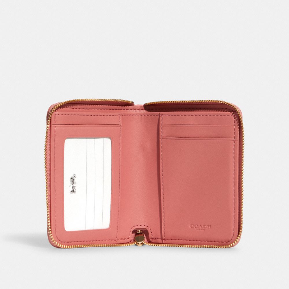 Signature jacquard and refined pebble leather| Two credit card slots| ID window| Full-length bill compartment| Inside open pockets| Zip-around closure| 4 1/2" (L) x 3 3/4" (H) x 3/4" (W)Style No. C8323