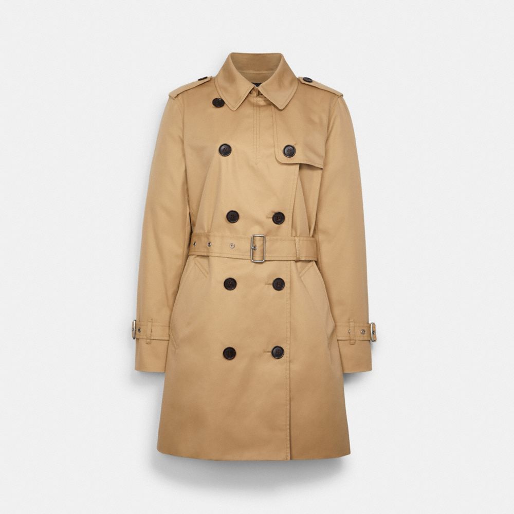 68% cotton, 32% polyester| Lining: 56% polyester, 44% viscose| Button closure| Slip pockets| Adjustable belt| Length: 33"Style No. C8771