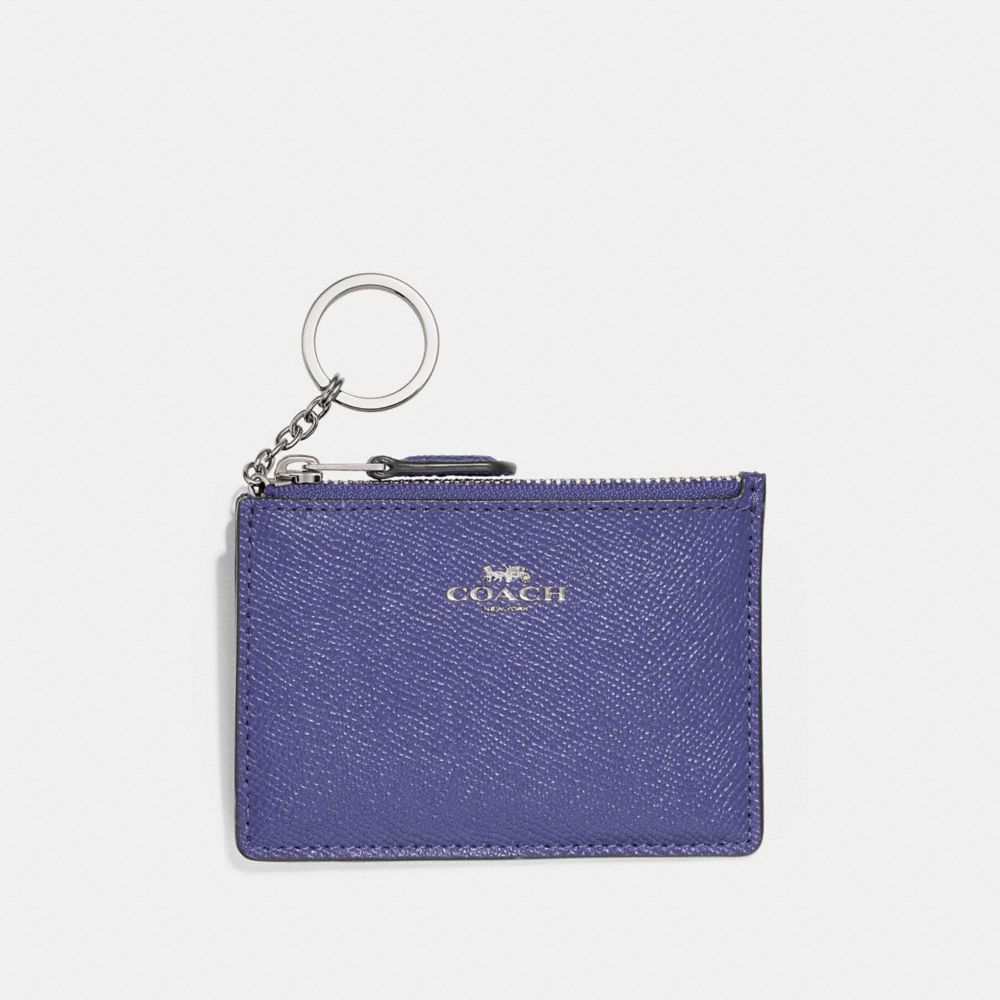 | Crossgrain leather| Credit card slot and ID window| Zip-top closure, fabric lining| Attached split key ring| 4 1/4" (L) x 3" (H) x 1/2" (W)
